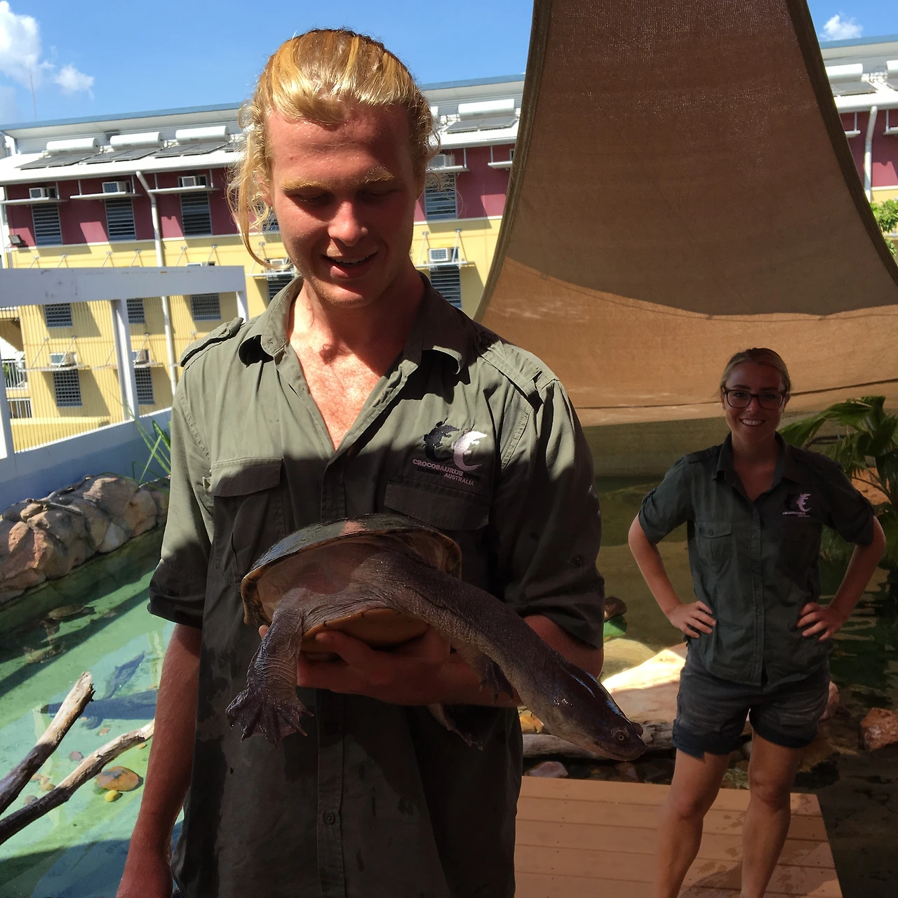 자! 바로 악어 수족관으로 가보자. 죽음의 케이지 (Cage of Death) 투어를 구입하면 입장권이 포함되어있다. (가격은 아래 링크에서 확인해주세요) 예약은 필수이고, 예약된 세션에 맞춰서 옷을 사물함에 보관하고 수영복으로 갈아입는다. 투어 전에 딱 하나만 하지 말라고 주의 사항을 준다. 구멍이 있는데 손가락을 절대 넣으면 안 된단다. 손가락 잘리는 사건이 었었다고 한다. 투어 후에는 샤워를 할 수 있는 시설이 있어서 다시 숙소로 갈 필요가 없어 편리했다. 악어 수족관에 제일 큰 악어는 5m가 넘는 바다 악어 (Seawater Crocodile)인데 잡혔을 때 부상을 당해있어서 앞발이 잘려있다. 걔를 만날 수 있을까?
