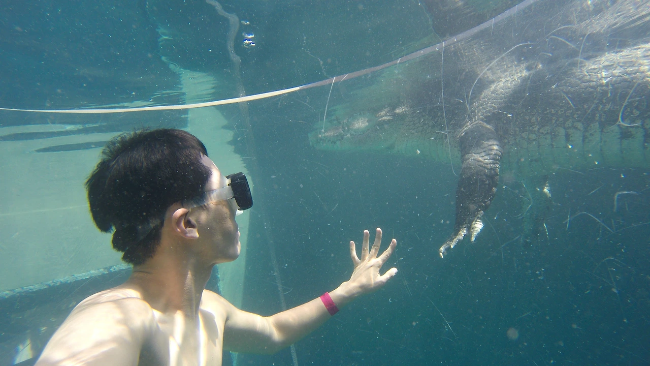 악어의 천국 호주 다윈에서 악어와 함께 수영을...
