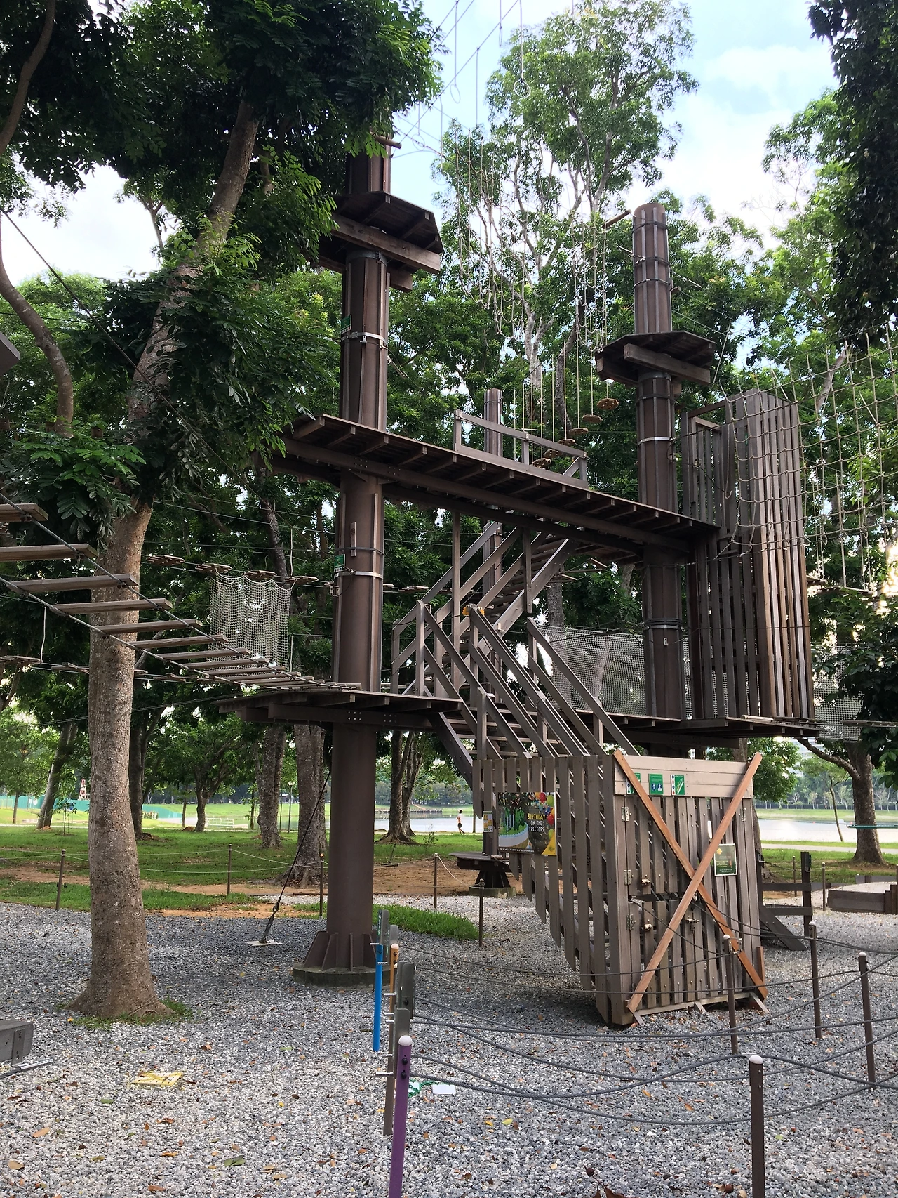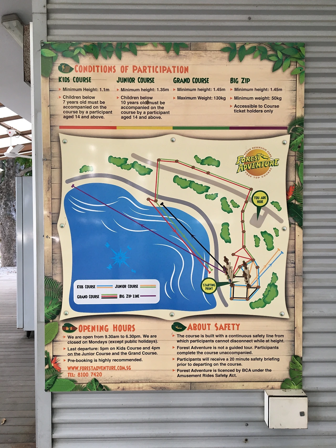 베독호수에는 포레스트 어드벤처라고 나무들 사이에 장애물, 짚라인 등을 설치해서 개인/팀으로 구성해서 즐기는 게임이 있다. 아래 사진들을 참고해보자. 가족여행으로 싱가포르를 가면서 초/중학생 애들이 있는 가정은 즐거운 하루를 보낼 수 있을 것이다. 포레스트 어드벤처 -> WaWaWa에서 저녁 -> 베독 호숫가 산책 코스로 반나절이면 충분하다.