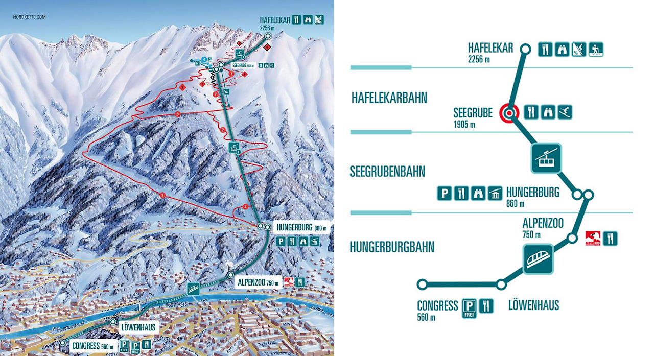 노르트케테 케이블 카 지도 (innsbruck.info)