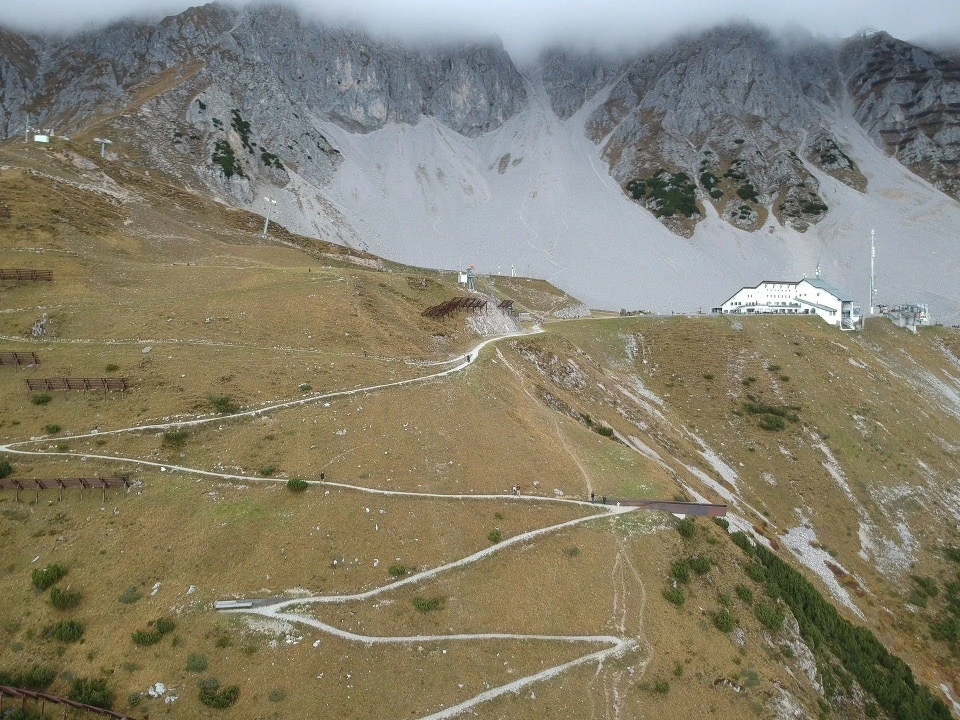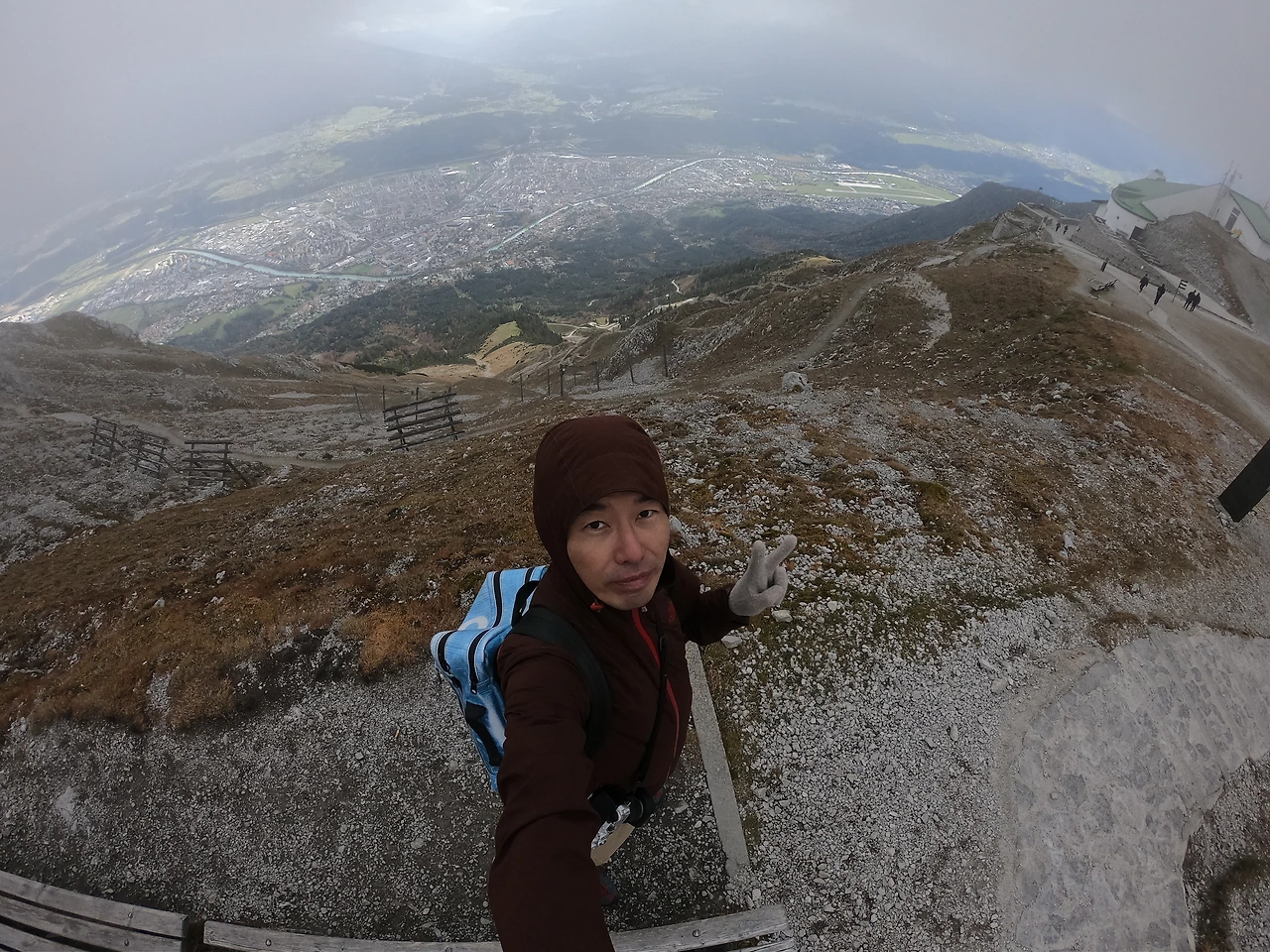 노르트케테 케이블 카는 지도를 유심히 봐야 한다. 필자는 여기서 벼락 치기 공부의 한계가 드러났는데, 처음 산악열차를 잘 탔다. 동대문 디자인 플라자를 디자인한 유명한 이란 건축가 자하 하디드가 디자인 한 역에서 출발하면 지하와 지상을 오가며 아름다운 뷰를 선사한다. 중간 기착지인 훙거부르크 (Hungerburg)까지도 문제가 없었고, 케이블카로 잘 바꿔 타서 무사히 제그루베 (Seegrube)까지 올랐갔다. 처음에는 제그루베가 정상이 아니라서 의아했는데 제그루베에서 산의 정상이 안개 + 구름에 가려서 보이지 않았다. 정상에 건물이 있는 것 같은데 잘 보이지 않으니 "아! 원래 여기까지만 오는 건가 보다" 하고 열심히 제그루베를 구경 했다. 제그루베 레스토랑에서 점심을 먹을까 했는데 날씨가 안 좋다 보니 사람들이 모두 실내에 있어서 너무 붐볐다. (제그루베 레스토랑은 인스부르크의 강력 추천 레스토랑 중의 하나이다. 야외에서 식사를 하면 꼭 천상의 점심이 될 것 같았는데 현실은 우중충한 날씨로 인해 밖에는 사람이 없었다.) 그래서 점심은 포기하고 사진 찍고 드론도 날리고 신나게 구경하다가 다음 일정을 위해서 이제 슬슬 내려가야겠다 하고 케이블카 역으로 돌아오는데 정상인 하펠레카르(Hafelekar)에서 내려오는 또 다른 케이블 카가 있는 것이 아닌가!! 다시 확인해보니 내가 산 표가 정상까지 갈 수 있는 표였던 것이다. 치밀하게 준비하지 않았더니 몸이 고생을 했다. 부랴부랴 올라가서 급하게 구경하느라 해발 2,300미터인 정상에 셔 여기 뛰고 저기 뛰고 했다. 돌아가는 기차표도 미리 구입을 해 변경이 안돼서 서둘러 다녀야 했다. 제그루베에서 너무 여유롭게 보낸 것이 살짝 후회가 되었다. 그래도 모르고 내려간 것보다는 훨씬 낫다고 스스로를 다독였다.