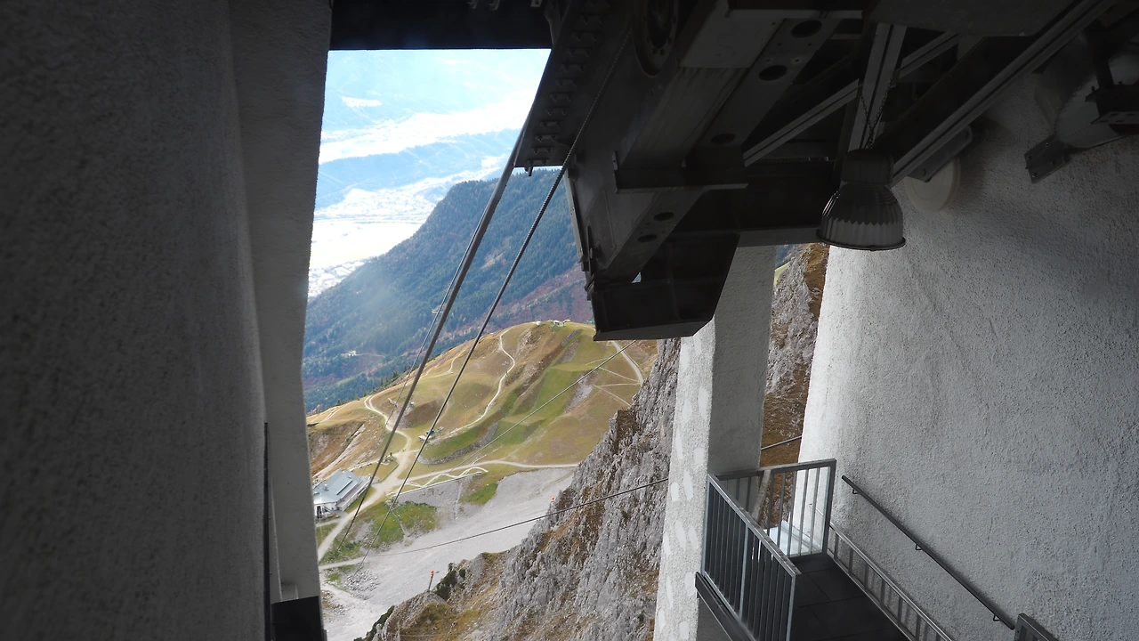 하펠레카르 (Hafelekar)에 있는 케이블카. 제그루브까지 올라왔던 것보다 작았다.