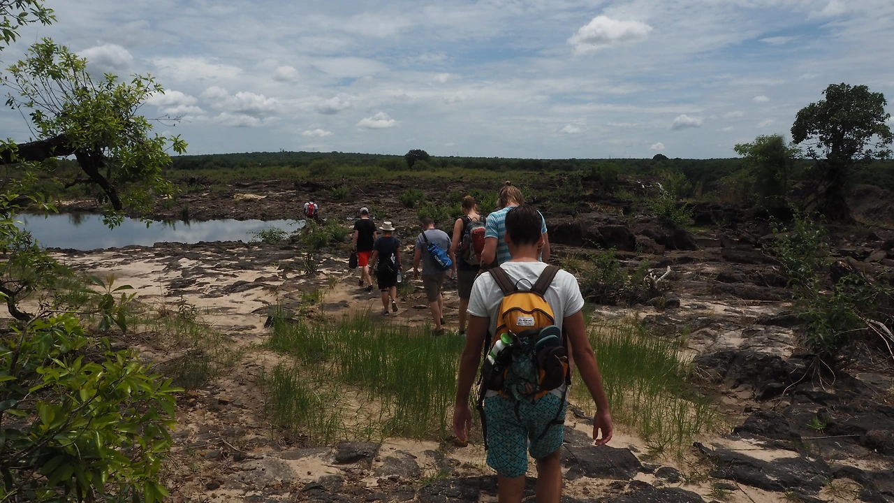 악마의 수영장은 보통 건기에만 운영한다. 수영장까지 가는 법은 두 가지가 있는데, 수량이 상대적으로 많을 때는 모터보트를 이용하고, 물이 없으면 걸어서 들어간다. 필자가 방문했을 때는 물이 거의 바닥을 드러냈을 때라 걸어서 들어갔다. 가는 길이 일반 하이킹 같지만 우기 때는 폭포가 되는 곳이기 때문에 중간중간 물살이 센 곳을 만나고 수영을 해서 넘어 가느라 생각보다 시간이 오래 걸렸다. 사진 찍으면서 따라가니 한두 시간 걸린 것 같다.