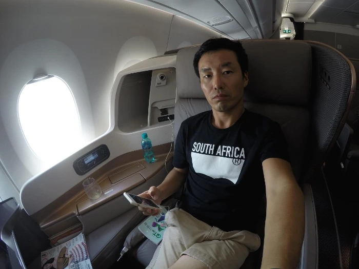 싱가포르 항공에서 다양한 비행기/좌석 클래스를 경험했지만 그중 최고는 싱가포르-남아프리카 공화국 구간 A350 비즈니스 클래스이다. 비행기도 새 비행기였고, 비즈니스 클래스 좌석도 타 항공사 대비 폭이 넓어서 매우 편했다 (180도로 펼쳐서 침대형으로 만드는 게 처음에는 익숙하지 않아서 스튜어디스의 도움을 받았다). 싱가포르발 싱가포르 항공 비행기 가격은 비싸기로 유명한데, 필자는 마일리지 신공을 이용해서 다녀왔다.