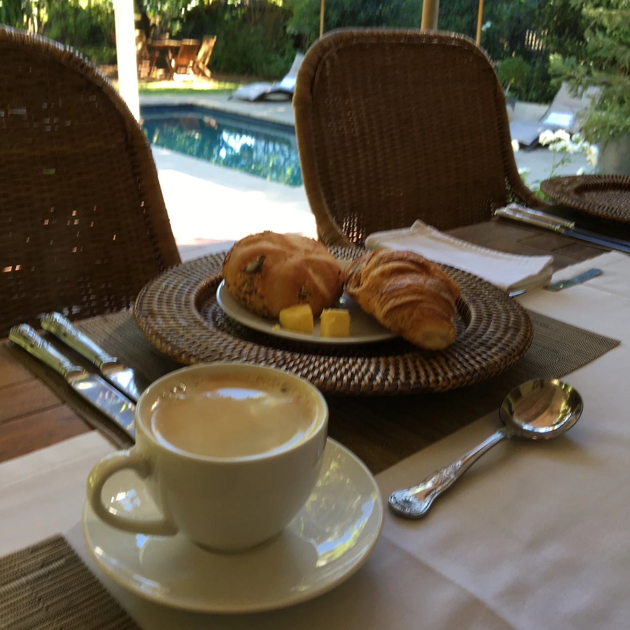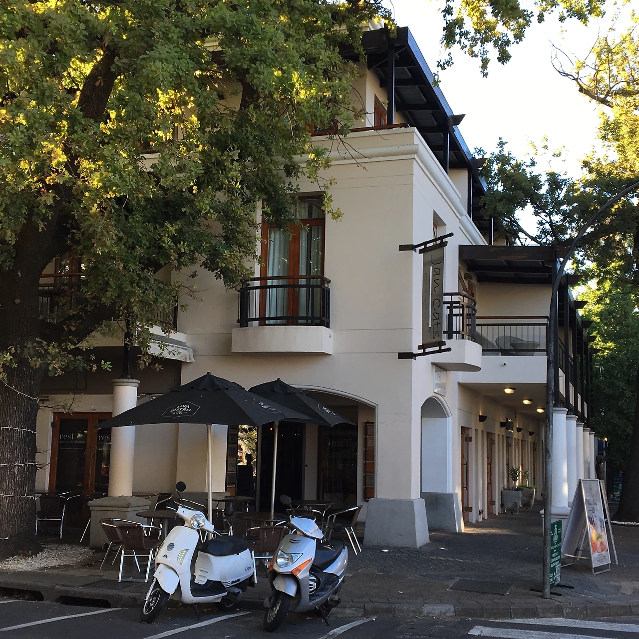 그런데 여기 와이너리에서 하룻밤을 보낸 숙소는 정말 잊을 수 없는 경험이다. 건물 자체는 스텔렌보스의 매너 (Manor)라고 불리는 오래된 주택을 숙소로 개조해서 사용하고 있다. 글로벌 브랜드의 호텔이 아니기 때문에 각각의 숙소마다 집주인이 따로 있는 구조이다. 이런 종류의 숙소가 스텔렌보스 곳곳에 있으면 아름다운 마을의 풍경을 자아낸다. 그래서 아래와 같이 사진을 많이 찍었다. ^^ 기억으로는 하룻밤에 USD 100 정도 했던 것 같다. (가격은 변동될 수 있습니다.)