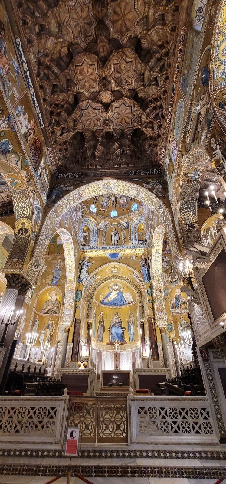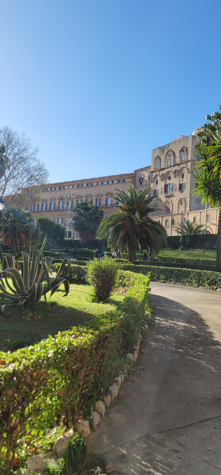 궁전 부속 예배당인 #팔라티나예배당'은 황금빛 모자이크로 장식된 화려한 성화가 압권이다. 팔레르모 대성당보다는 규모가 훨씬 작지만, 모자이크와 성화는 압도적이다. 시가에서 8km 떨어진 산꼭대기에 자리한 몬레알레 대성당의 천장 성화가 이곳에서 카피된 것이라 한다. 궁전의 정원은 그다지 인삼 깊지는 않으나, 거대한 둘레를 자랑하는 나무와, 특히 소나무와 뒤엉킨 지중해산 나무군락이 특징적이다.