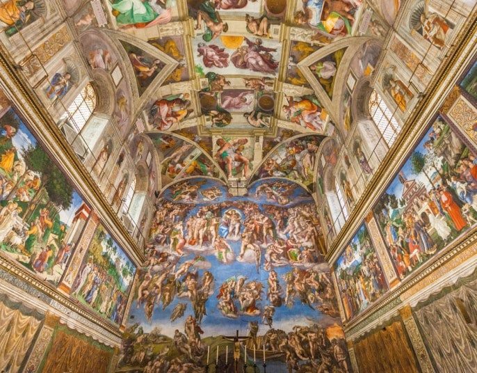 세계에서 가장 큰 박물관 중 하나로, 고대 이집트에서부터 르네상스의 걸작 등 많은 작품들이 소장되어 있고, 특히 르네상스 3대 거장이라 불리는 미컬란젤로, 라파엘로, 네오나르드 다빈치의 작품들로 유명하다. 연결통로에 있는 시스티나 예배당은 사진 촬영 금지 지역으로, 그 천정은 미켈란 젤로의 <천지창조>와 <최후의 만찬>으로 채워져 있어 수많은 관람객들이 하늘만 쳐다보고 있다. 당시 30대의 젊은 나이였음에도, 5년에 걸친 천정화 작업들로, 직후 한쪽 눈을 실명하고, 20여 년의 암울한 요양생활을 겪을 수밖에 없었던 고통을 아주 쬐끔, 잠시나마 체험해 보게 된 듯하다. 조각가이자 의사로 해부학에 조예가 깊었던 탓에 그의 그림에서는 움직임의 동작에 따른 근육과 혈관까지도 입체적으로 잘 묘사되어 있어 생동감이 느껴진다. <아테네 학당>등 작품을 남긴 라파엘로 또한, 이곳 천장화 작업에 몰두한 후유증인지, 38세에 요절했다 한다.