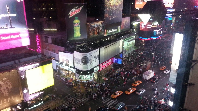 트레이더 조에서 산 과자들을 큰 샤핑백에 담아 들고 타임스퀘어 쪽으로 걸었다. 타임스퀘어에도 무진장 많은 사람들이 있었다. 해가 지고 있었다. 해가 빛을 잃어갈수록 거리는 더욱 밝아지고 있었다. 요란한 네온 아래에 사람들의 행렬이 끊임없이 이어지고 있었다. 특별한 목적지가 없었던 우리는 타임스퀘어 도로 가운데에서 고층빌딩의 네온을 올려다봤다. 뮤지컬을 하나 봐도 좋겠다는 생각을 했었지만 표를 사기에는 이미 늦어버렸다. 사람들 구경하는 것도 심심치는 않지만 그렇게 서있으려니 왜 여기 이렇게 서있나 하는 생각이 들었다. 전에 갔었던 더 뷰(The View)가 생각났다. 메리옷 호텔 건물 꼭대기에 있던 레스토랑이다. 몇 년 전에 왔을 때는 여기서 세라는 치즈 뷔페를, 소피와 나는 와인 한 병을 시킨 적이 있었다. 세라는 아깝게도 치즈를 몇 개 먹다가 먹지 않았고, 와인만 마시던 우리는 세라가 남긴 치즈를 한 두 개 맛보기만 했던 곳이다. 그러고서도 100불 넘게 나온 곳이다. 그러고 나서 건너편 맥도널드에서 2불인가 했던 아이스크림으로 디저트를 먹었지. 내가 이런 생각을 하며 그 건물에 들어서자 소피는 거기는 너무 비싸다고 한다. 하긴 그렇다. 너무 비싸지 않으면서도 좀 앉아서 맥주 한 잔 할 곳 없을까.. 생각하며 기웃거린 끝에 적당한 곳을 발견했다. 꼭대기층은 아니지만 역시 높은 층에 라운지가 있는 것이다. 그곳으로 올라가니 예상했던 그대로, 창문 밖으로 타임스퀘어 인파를 내려다보면서 맥주 한 잔 할 수 있는 스포츠바였다. 마침 창가에 앉았던 백인 노부부가 자기들은 이제 간다며 우리 보고 자기들 앉은자리에 앉으라고 한다. 그렇게 운 좋게 창가에 자리를 잡고 새무얼 아담스 두 잔을 시켰다. 목마르던 차에 마시는 새무얼 라거.... 정말 시원하고 맛있었다. 저 아래 세상에는 여전히 사람들의 머리가 움직이고 있었다. 개미떼처럼 꼬리에 꼬리를 물고 이어지는 인파, 지구촌 곳곳에서 몰려온 인파. 왜 여기에 몰리는 걸까? 여기서 뭐 하고 있는 걸까? 어디서 와서 어디로 가는 걸까?