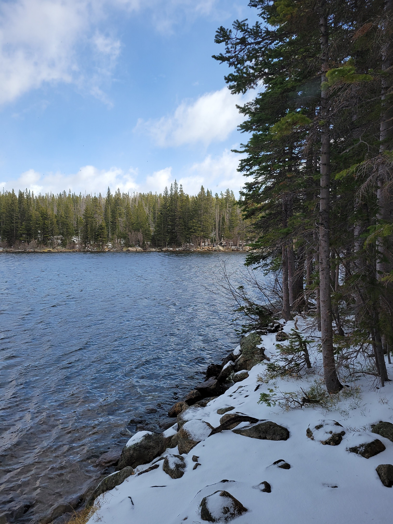로키산맥은 캐나다의 브리티시 콜롬비아와 앨버타주에서 시작해 미국의 몬태나, 아이다호, 와아오밍, 유타, 콜로라도, 뉴멕시코주까지 이어지는 거대한 산이다. 지난 2009년 6월 캐네디언 로키 밴프를 다녀온 이후 이번이 두 번째고 미국 쪽으로는 처음이다. 2시간여 달려서 에스테 파크 부근에 도착했고 로키 산 입구에 다 달았다. 입구에서 25달러인가를 주고 표를 사야 했다. 매표원 하는 말이 로키산에서 가장 경치가 멋진 곳으로 유명한 Trail Ridge Road (12,183 ft)는 이미 3주 전에 폐쇄했다고 한다. 고도가 높은 곳이라 첫눈이 온 후 얼어서 이미 겨울 시즌에 들어간 것이다. 베어 레이크는 갈 수 있는데 호수 주변을 걸으려면 파이크 슈즈가 필요할 것이라고 했다. 우리는 베어 레이크로 방향을 잡았다.