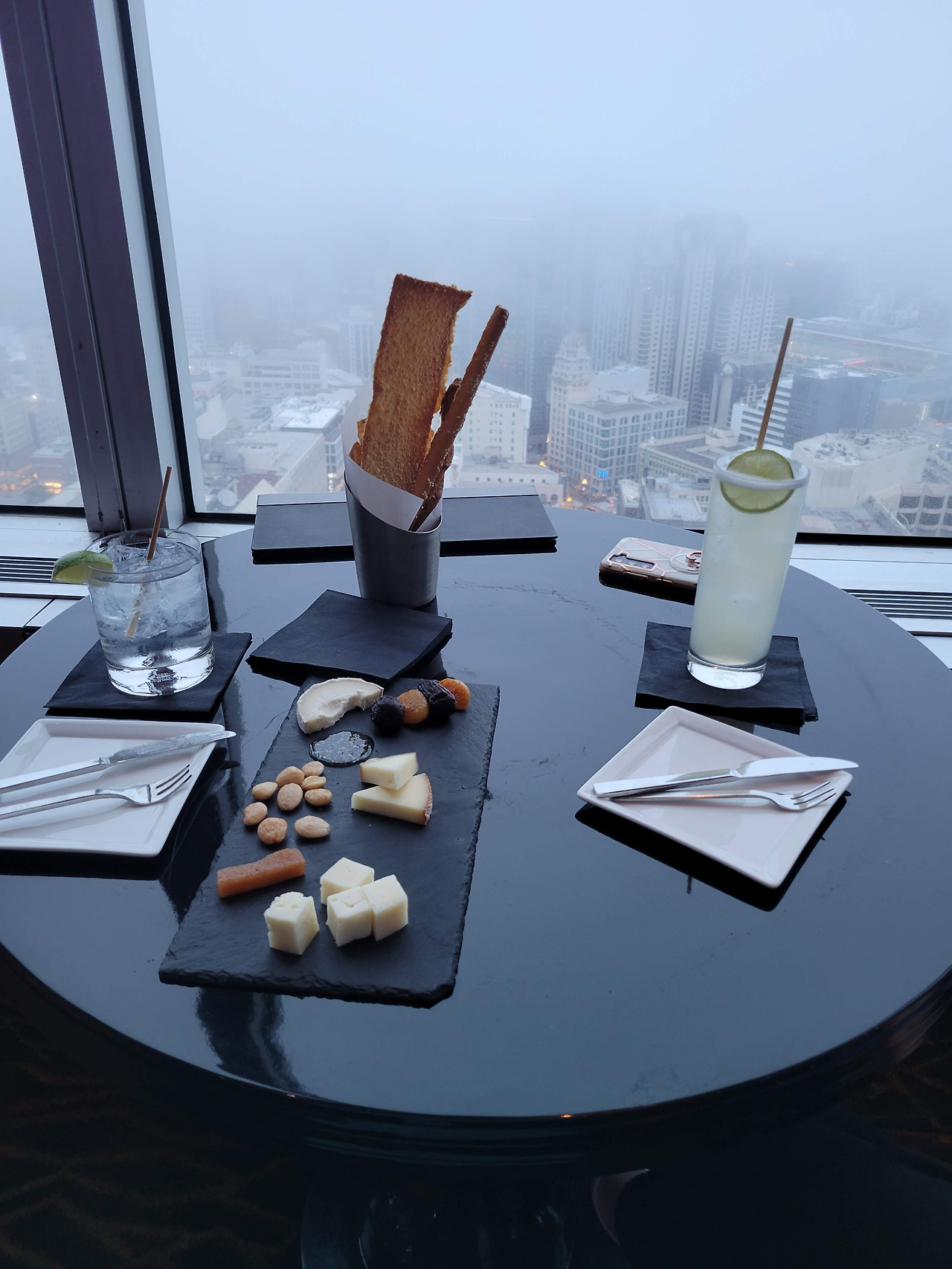 힐튼 샌프란시스코 유니언스퀘어 호텔 꼭대기층인 46층에는 시내를 360도 내려다볼 경수 있는 Cityscape Bar 가 있다. 마침 호텔 크레디트도 써야 하니 이곳에서 칵테일 한 잔 하며 선셋도 구경하려고 올라갔다. 선셋과 야경을 구경하려고 바에 온 사람들이 많았다. 우리는 칵테일 두 잔과 치즈세트를 시켰다. 값은 75불이나 나왔다. 선셋 무렵 샌프란시스코는 안개가 자욱이 껴있다가 건물에 불이 하나둘 켜지면서 안개가 걷히고 맑아졌다. 방으로 돌아오기 전 배가 고픈 듯 해 우버 이츠로 초밥롤을 시켜놓고 로비에 들러 픽업했다. 방에서 남은 컵라면 하나 약간의 남은 음식, 픽업한 초밥롤, 남은 캔맥주로 저녁을 때웠다. 그리고 짐을 쌌다. 내일 아침 7시 15분에 떠나는 비행기라 5시까지 공항에 가려면 4시쯤 나가야 한다. 일찍 일어나기 위해 일찍 잤다.