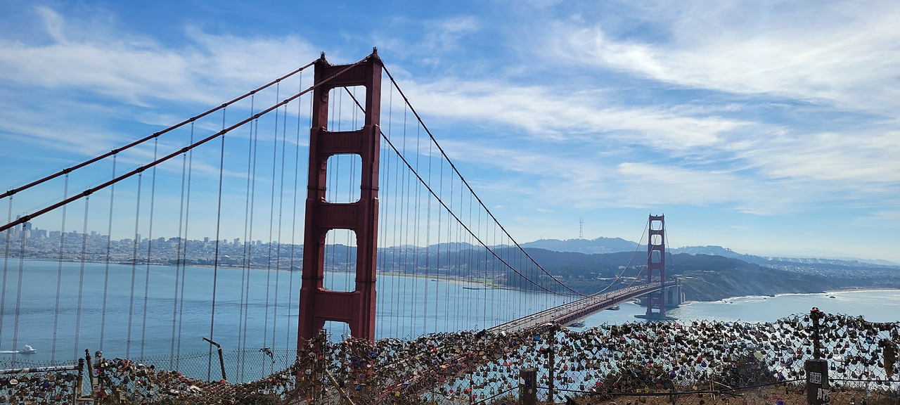 한 시간 반정도의 하이킹을 마치고 다음 목적지인 금문교로 향했다. 금문교를 코앞에서 보는 게 아니라 금문교를 가장 잘 볼 수 있는 곳으로 손꼽히는 Battery Spencer로 갔다. 19년 전에도 샌프란시스코에 와서 금문교를 봤기에 처음은 아니지만, 이곳의 뷰는 역시 뛰어났다. 주차하고 약 5분 정도 걸어야 하지만 주차장에서 바로 보이는 곳이다. 사진만 찍고 가기에는 조금 아쉬워 잠시 시간을 두고 가만히 금문교를 바라봤다. 바다에 우뚝 선 현수교 다리, 참 멋지다. 내려와서는 어제 가려다 못 갔던 소살리토에 갔다. 아직 배고프지 않아 바닷가 카페에서 커피 한잔, 음료 한잔, 클램차우더 하나를 시켰다.