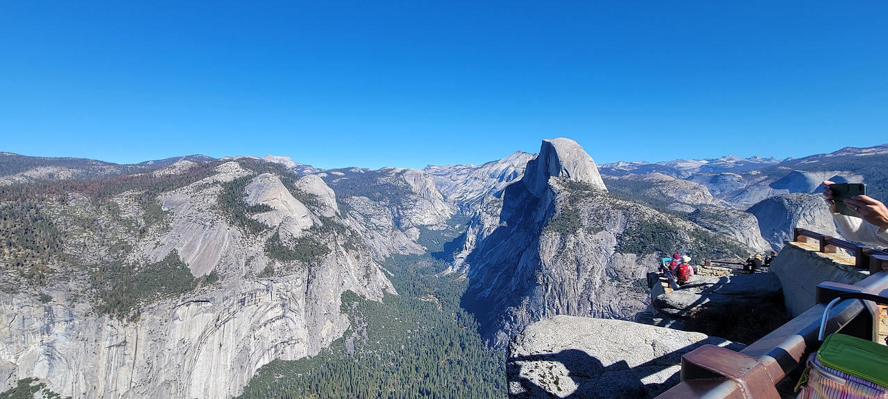 요세미티 최고의 뷰포인트 Glacier Point 까지는 한 시간 정도 걸렸다. 하프 돔이 가까이서 보이고, 요세미티 벨리 폭포, 네바다 폭포, 센티널 돔 등 요세미티의 봉우리와 폭포들을 파노라마처럼 감상할 수 있는 곳이다. 글래시어 포인트에서 한 시간 이상 운전해 내려간 후 마리포사 그로브에 들렀다. 엄청 키가 큰 세쿼이아 나무를 보려는 것이다. 그런데 웰컴플라자에서 남쪽 출입구 쪽으로 가는 길을 막았고, 무료셔틀도 운행 정지됐다. 옆으로 돌아서 아침에 갔던 트레일보다 더 긴 듯한 트레일을 걸어가야만 했다. 한참을 걸어갔더니 거기가 세쿼이아 나무를 본격적으로 볼 수 있는 마리포사 그로브의 시작점이다. 바로 앞에도 엄청 키가 큰 세쿼이아 나무가 좀 있긴 하지만 정작 엄청 큰 나무들이 있는 곳까지는 시간상 갔다 올 수가 없다. 1시간 후면 해질 시간이기 때문이다. 아쉽지만 가까운 빅트리 트레일만 가볍게 구경하고 하룻밤 예약해 둔 Oakhust 햄튼 인으로 향했다.