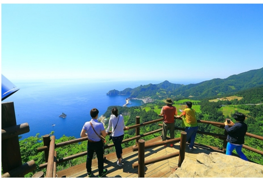 좁다란 산길 따라 얼마쯤 걸으니 해안 전망대가 눈앞에 나타난다. 곧바로 전망대에 올라 사방팔방 바라보니 역시라는 흡족함으로 잠시 동안 울릉도의 풍경에 빠져드는 시간이다. 말로는 표현하지 못할 만큼 신비스러움을 안은 아름다운 풍경이다.
