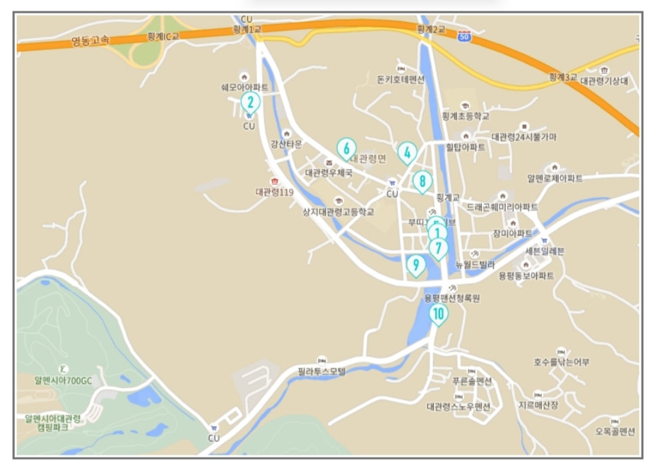 알펜시아 리조트와 인근의 용평 리조트가 있는 횡계 지역엔 아래와 같은 맛집들도 즐비하다. 전국에서 한우로 유명한 몇몇 지역 중 대관령의 목초를 먹고 자유롭게 자란 한우를 저렴한 가격으로 먹을 수 있는 정육식당은 으뜸 중에서도 으뜸인 곳이다.