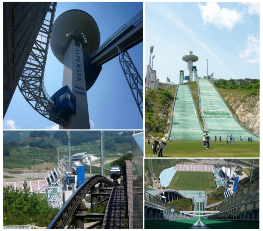 국내 유일의 스키 점핑 타워가 있고 비시즌 동안 경기를 준비하는 선수용 모노레일을 타고 타워의 꼭대기로 오르면 점핑 타워에 있는 전망대가 위치하고 있어 알펜시아 스포츠 파크, 골프장을 포함한 컨트리클럽을 포함하여 횡계 읍내까지 훤히 들여다 보이는 전망을 구경할 수 있는 색다른 체험 요소이다.