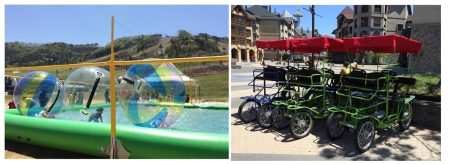 이외에도 여러 즐걸거리가 리조트 내에 구축되어 있어 가족들과 즐겁게 여름 낮밤의 향유할 수 있도록 되어 있다. 특히 리프트를 이용해 오른 스키장 피크에서 시속 40km 이상의 속도로 녹음이 짙은 풀숲을 뚫고 하강하는 알파인 코스터로 짜릿함을 온몸으로 느낄 수 있다. 이 뿐만 아니라 아이들이 즐길 수 있는 튜브 놀이와 다인승 자전거나 전동차 등이 아이들의 웃음소리가 끊이지 않는 즐거운 리조트 풍경을 연출한다.