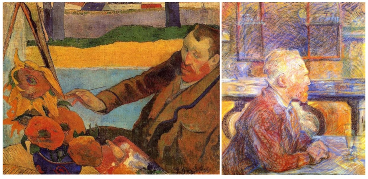 해바라기를 그리는 화가, 1888, 폴 고갱 (좌), 빈센트 반 고흐, 1887, 앙리 툴로즈 로트렉 (우)
