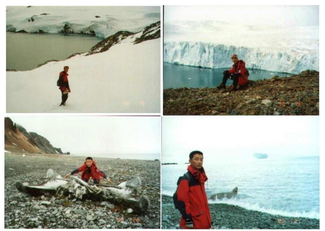 좌측 상단부터 맥스웰만의 만년빙으로 향하는 길과 만년빙 앞에서, 놀라 달아나는 바다표범과 함께, 그리고 펭귄마을로 가는 길목에서 고래 꼬리뼈의 잔해와 함께 한 컷