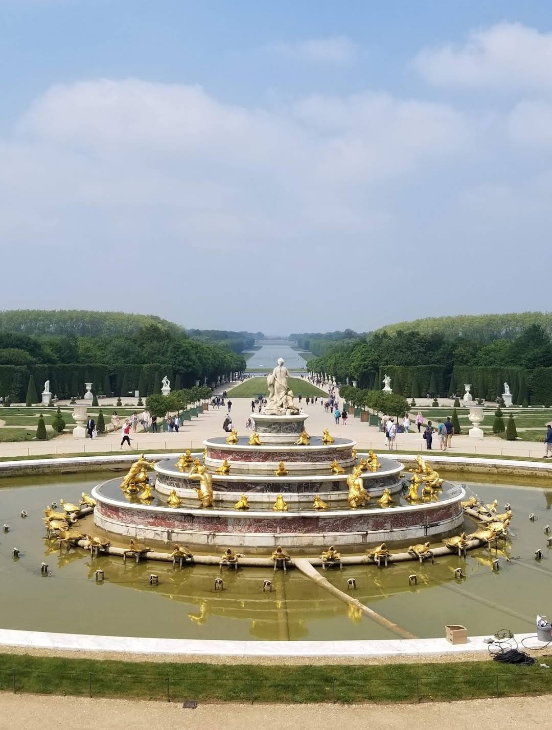 베르사유 궁전 앞 분수대와 광대하게 펼쳐진 정원의 모습