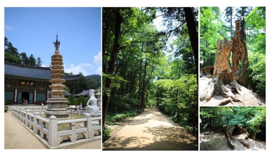 오대산 국립공원은 해발 1,563m의 비로봉을 주봉으로 동대산, 두로봉, 상왕봉, 효령 봉의 다섯 봉우리가 병풍처럼 늘어서 있어 오대산이라 명하며 우리나라 명산 중에서도 으뜸으로 꼽힌다. 횡계 IC로 나와 영동고속도로를 달리다 446번 국도로 들어가 약 20분이면 들를 수 있는 곳으로 상원사와 월정사가 있고 그중에서도 국보 48호인 월정사지 9층 석탑을 보여주며 아이들에게 아빠나 엄마의 설명이 가해진다면 기억에 남을 추억의 여행지가 되기에 충분하다. 그리고 힐링의 명소 월정사 앞 전나무 숲길은 폐 속 깊숙이 찌든 도시의 찌꺼기까지 다 토해내고 힐링을 경험할 수 있는 차분한 자연이다.