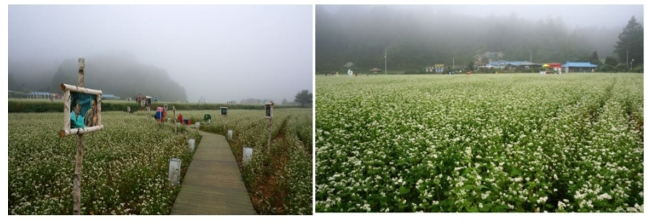 자연보다는 먹거리를 원한다면 출발하고 40분여 걸려 아이들이 잠들지 않고 있다면 쉬어갈 겸 출출한 배를 달래 끼니를 해결하기 좋은 위치에 봉평이 있다. 메밀이 유명한 봉평에서는 메밀전병, 메밀국수로 깔끔한 한 끼 식사를 해보는 것도 좋을 것 같다. 여름의 보양식이 필요하다면 구수한 누룽지 백숙을 선보이는 곳도 이효석 문학관 근처에서 쉽게 찾을 수 있다. 여름 흐드러지게 핀 메밀꽃밭과 이효석 문학관을 구경하며 여행을 마무리해보면 좋을 것 같다.