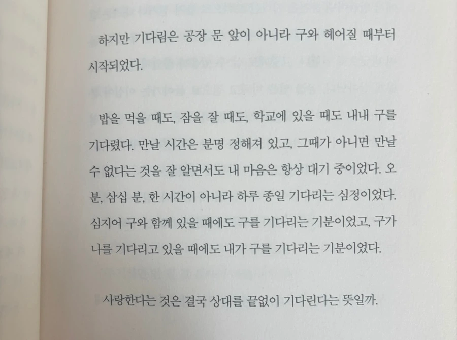 처음 생각과는 다르게 읽으면서 충격적이라던가 끔찍하다, 잔인하다는 생각은 들지 않았다. 그저 마음이 아프고 아련했다. 어렸을 적부터 쭉 붙어 다니며 연인이라는 관계보다 더 깊은 관계인 구와 담의 이야기였다. 연인보다 더 깊은 관계는 그 사람이 바로 나고, 내가 그 사람이라는 것인데 구와 담은 그런 관계였다. 서로 설명이 필요 없는 관계였다.
