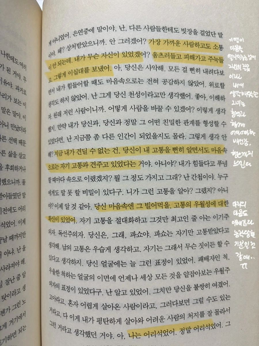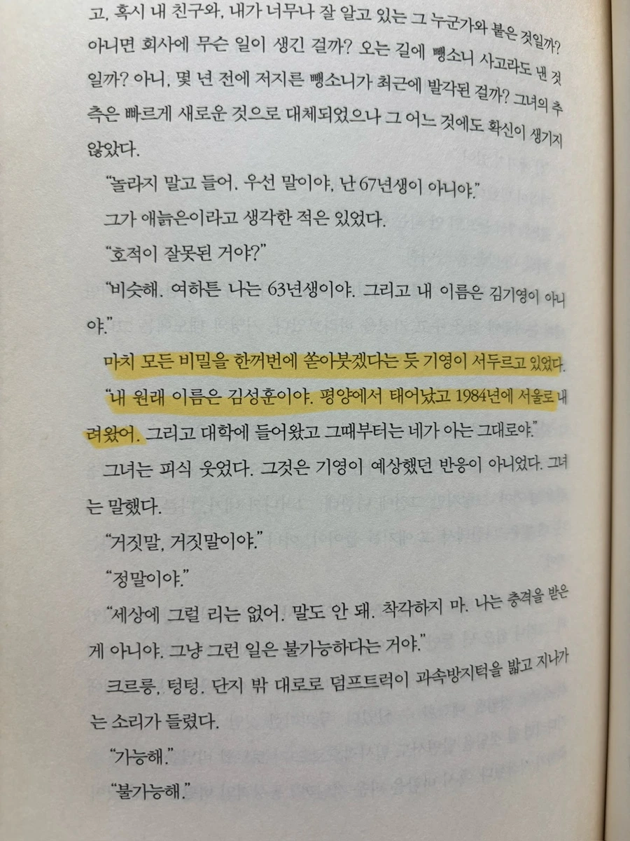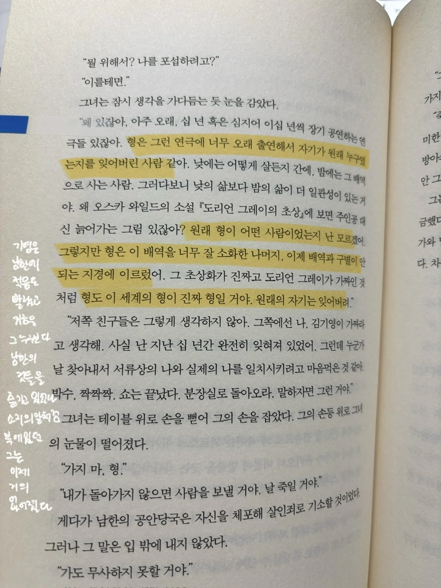 어쩌면 그 외로움을 남한에 산 21년간 쭉 느꼈을 수 있겠단 생각도 들었습니다. 그동안 누구에게도 자신의 정체를 밝힐 수 없었으니까요.