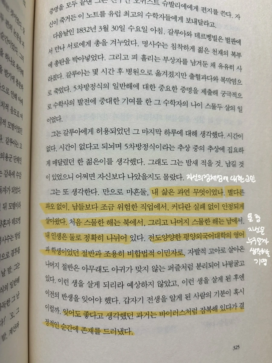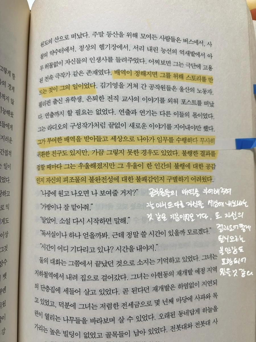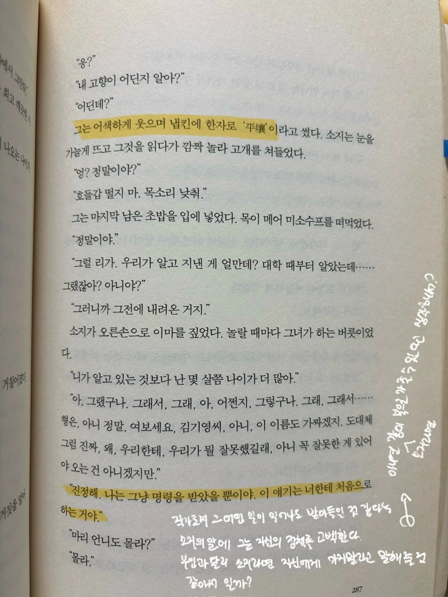 어쩌면 그 외로움을 남한에 산 21년간 쭉 느꼈을 수 있겠단 생각도 들었습니다. 그동안 누구에게도 자신의 정체를 밝힐 수 없었으니까요.