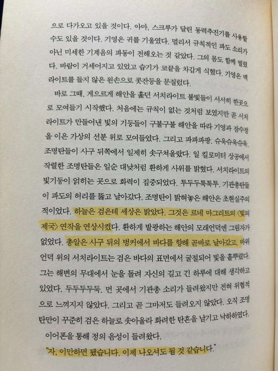 그것은 르네 마그리트의 <빛의 제국> 연작을 연상시켰다'