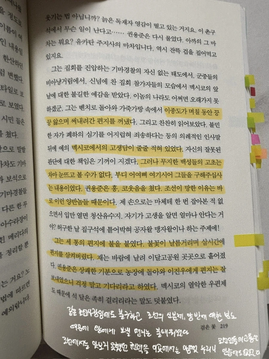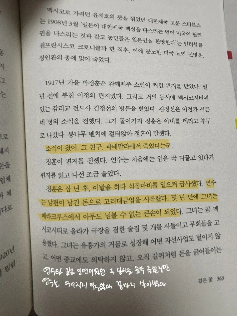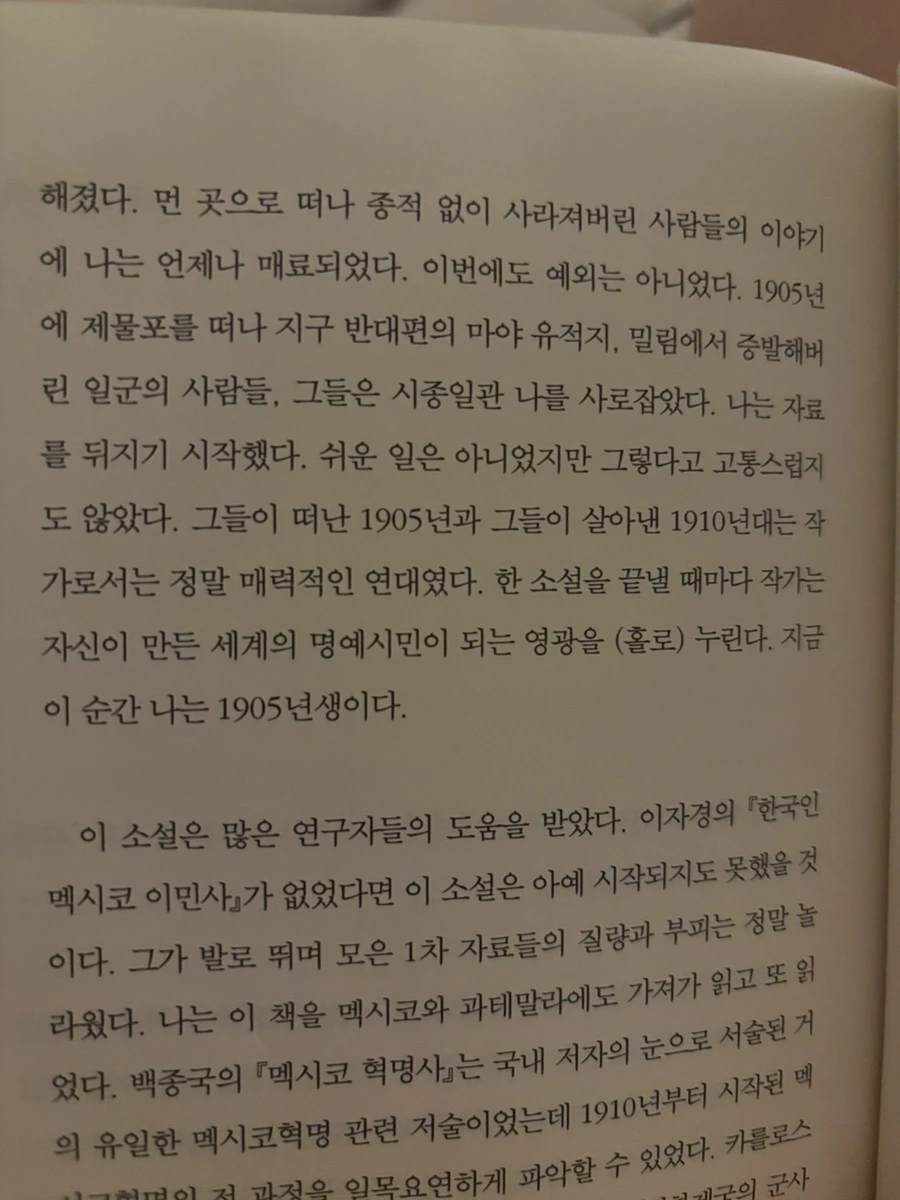 제가 이 책을 안 읽었으면 1905년 멕시코 이민자들의 삶에 대해 관심을 가져볼 기회조차 없었을 거예요. 소설의 순기능이라고 할 수 있겠네요. 다양한 소설을 읽으면서 저의 세계도 확장되어 가는 것 같습니다.