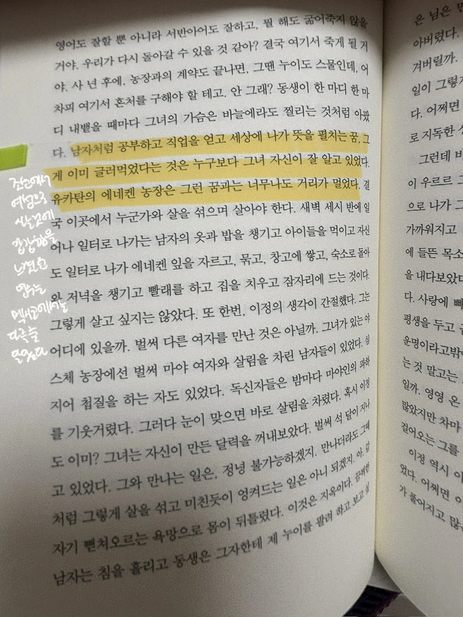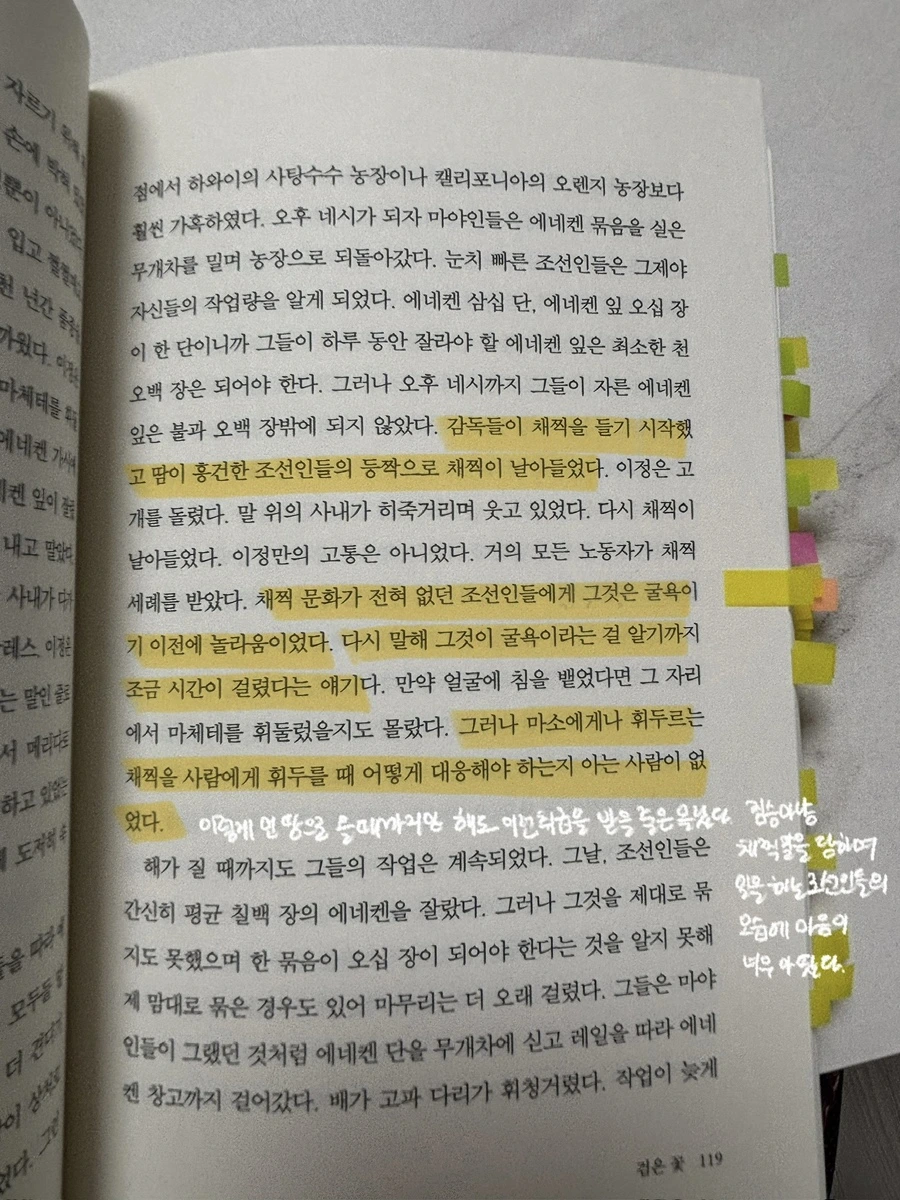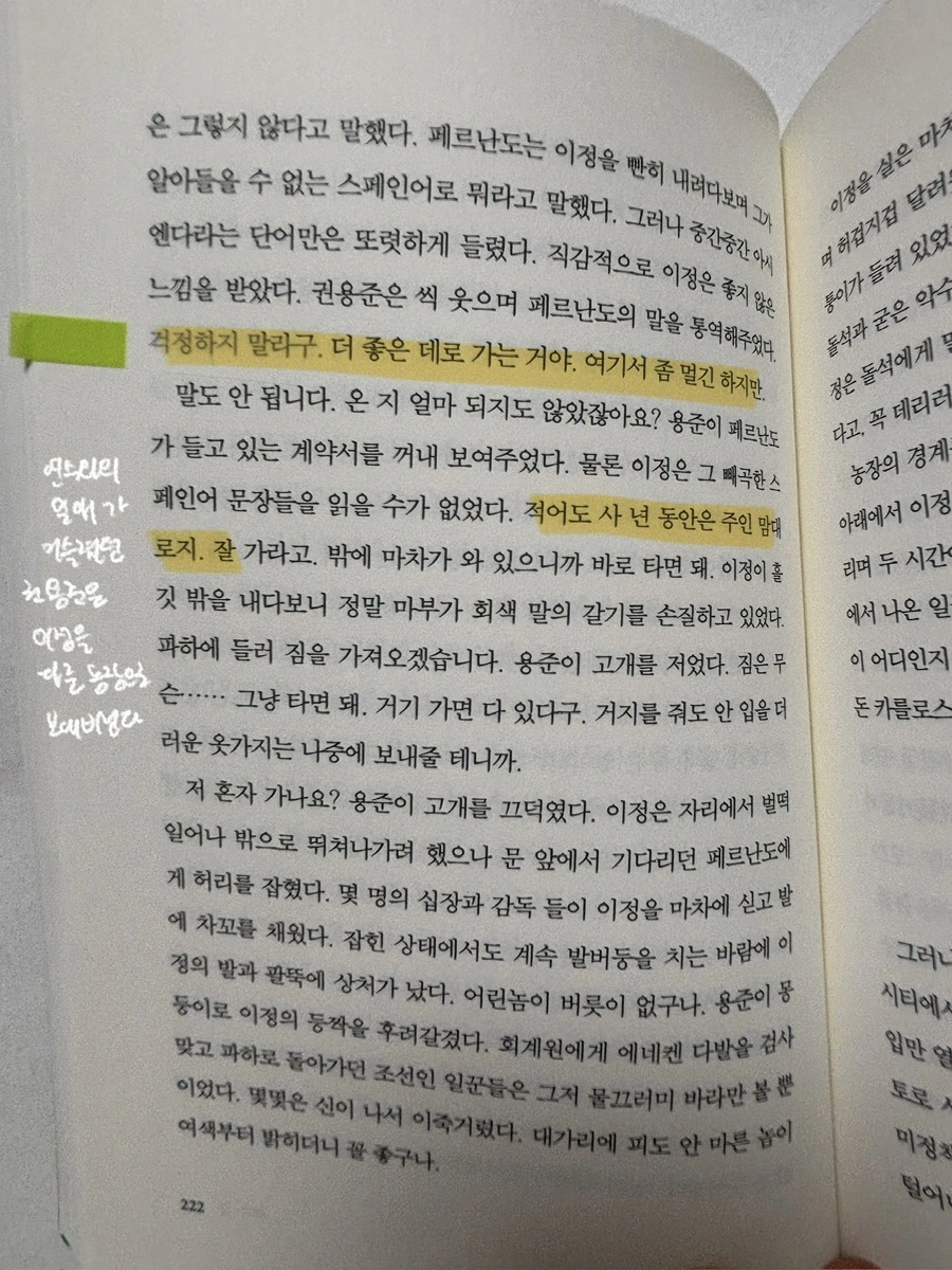제가 이 책을 안 읽었으면 1905년 멕시코 이민자들의 삶에 대해 관심을 가져볼 기회조차 없었을 거예요. 소설의 순기능이라고 할 수 있겠네요. 다양한 소설을 읽으면서 저의 세계도 확장되어 가는 것 같습니다.