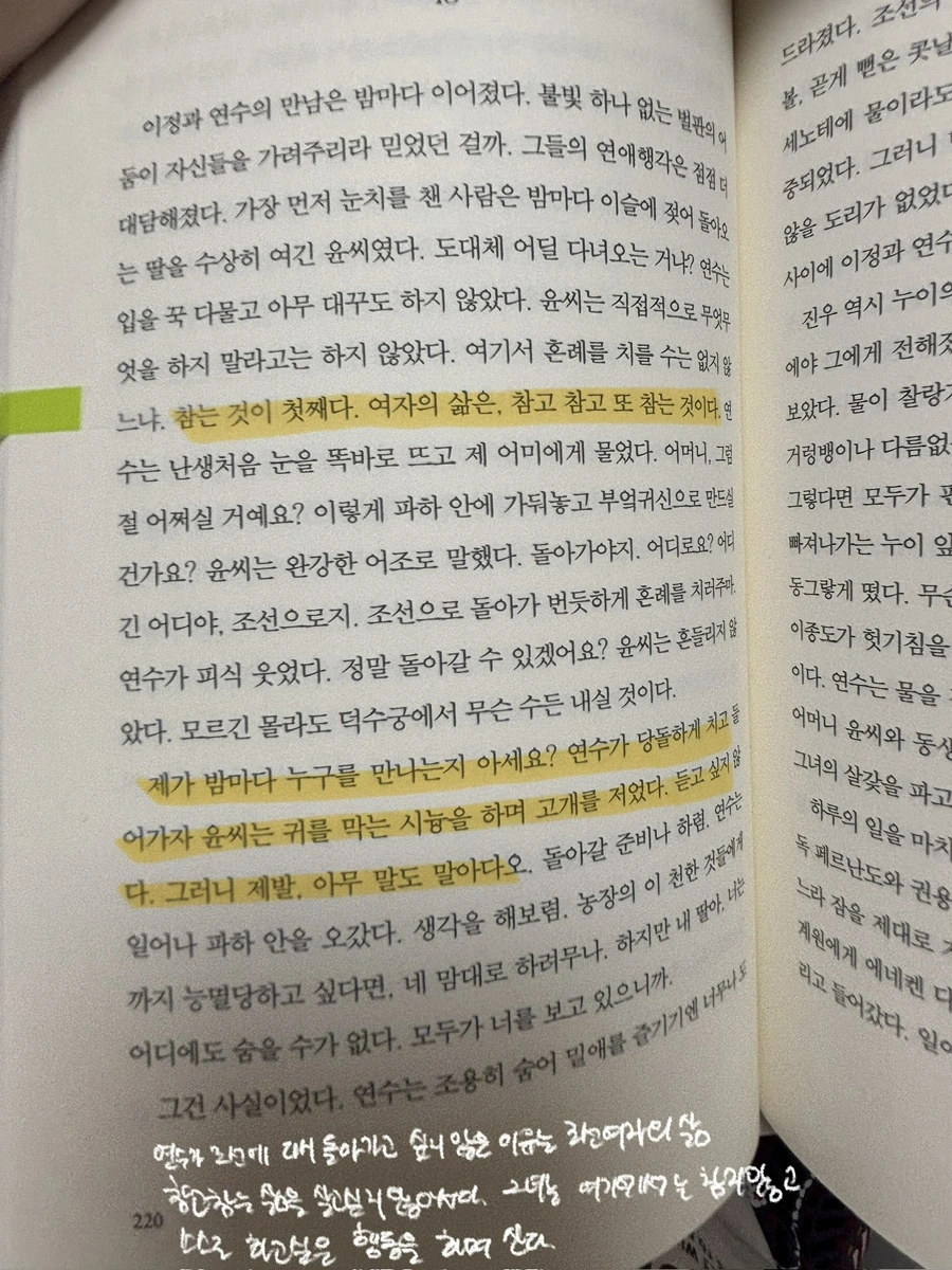 그녀의 어머니는 다시 조선으로 돌아갈 거라며 그녀의 행동을 나무라지만 연수는 현실적인 사람이기 때문에 알고 있죠.