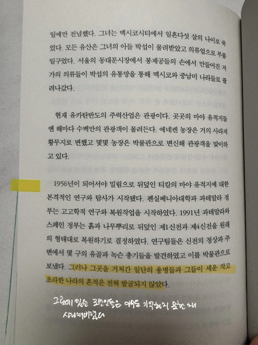 '1905년 제물포를 떠나 지구 반대편의 마야 유적지, 밀림에서 증발해 버린 일군의 사람들'의 이야기는 마음을 시리게 만들었어요. 차라리 소재도 픽션이었다면 이렇게 마음이