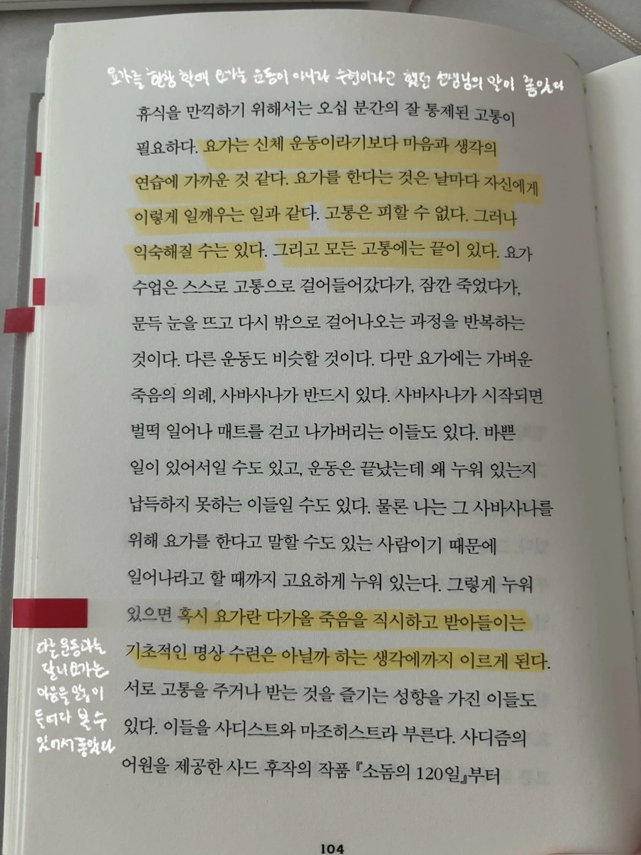 책에서 이 부분을 읽고 예전에 요가 선생님이 요가는 운동이 아니라 수련이라고 했던 말이 기억났습니다.