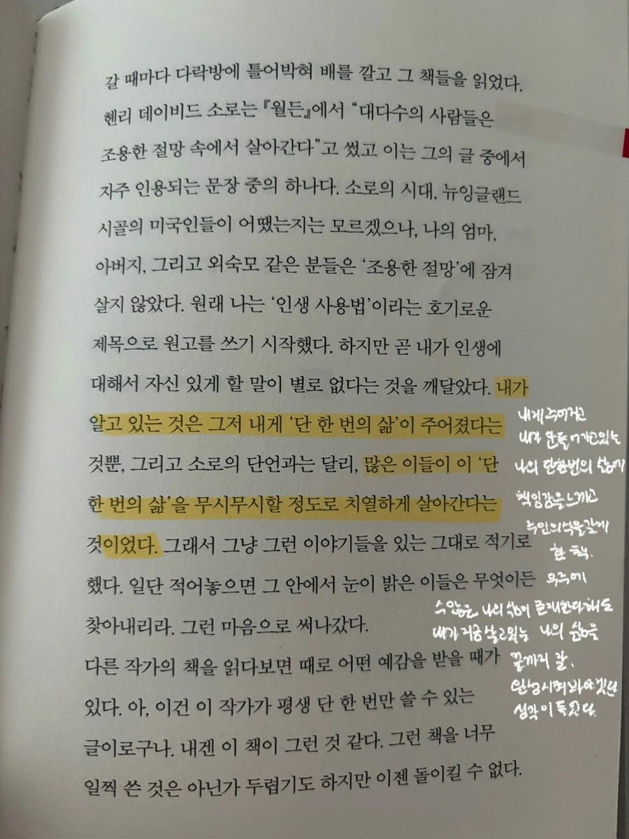 작가님의 삶, 생각을 들여다볼 수 있었어요.