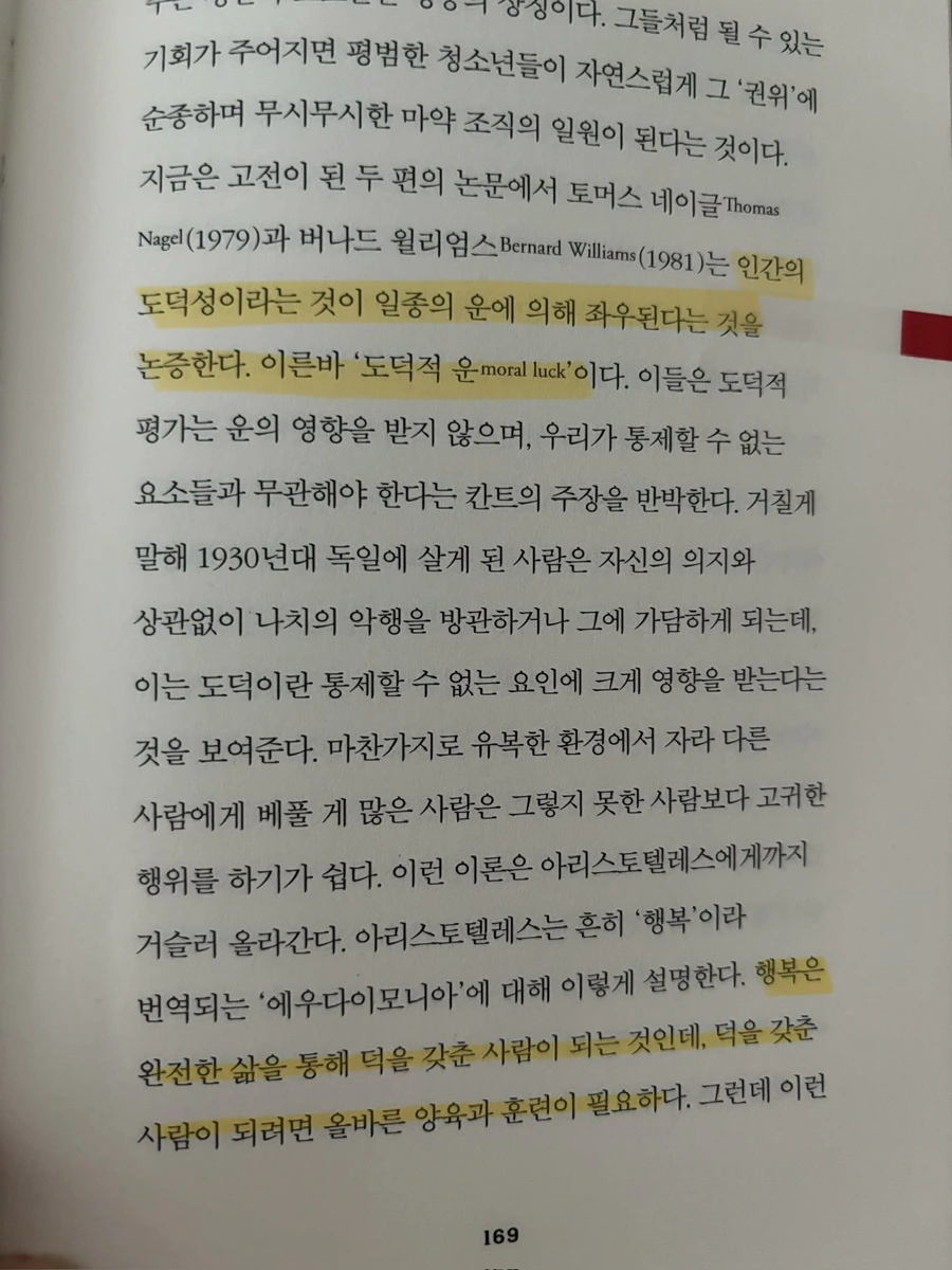 '도덕성이란 일종에 운에 의해서 좌우된다는 도덕적 운'에 대해서 처음 알게 되었는데요. 매우 공감되었습니다.