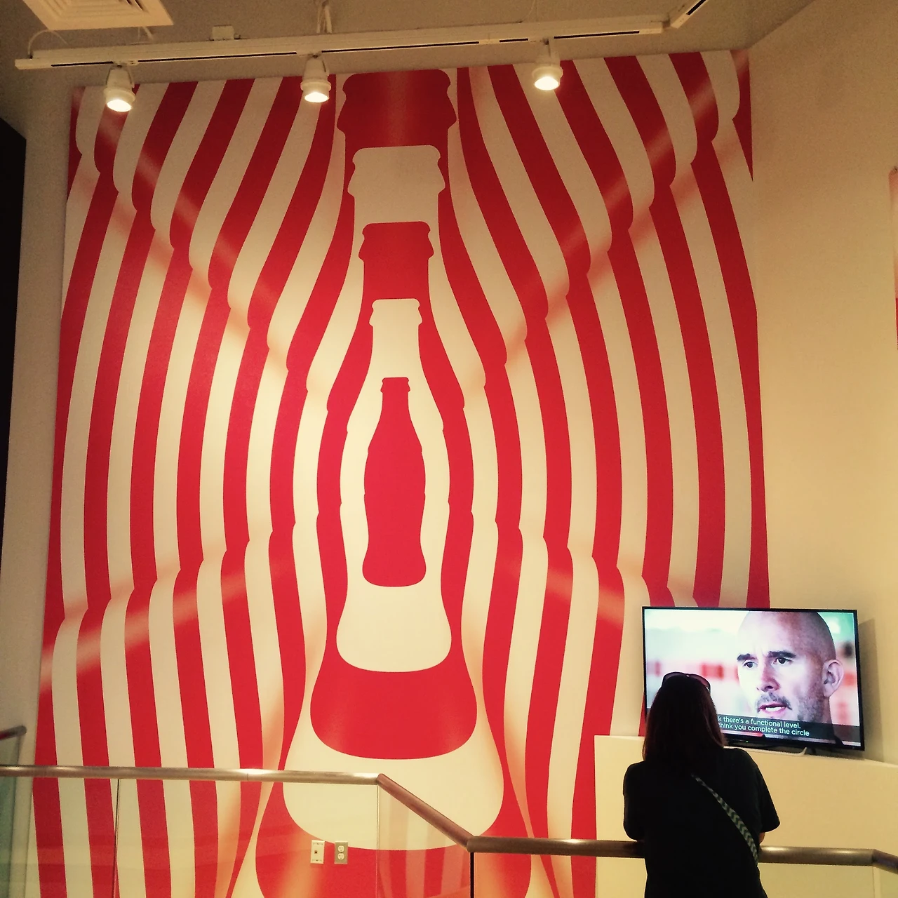 코크의 역사를 보여주면서 병 모양이나 로고의 변천사, 예전에 사용되었던 광고나 스폰서를 맡았던 스포츠 팀과 선수들에 관한 아이템들을 전시해놓은 구역과 코카콜라를 주제로 한 팝아트 작품들을 전시해놓은 구역이 훨씬 재미있고 볼 것도 많다. 아무래도 브랜드의 역사가 길다 보니 역사적인 면을 많이 강조한다. 그런데도 코카콜라는 많은 사람들에게서 젊은 이미지를 가지고 있으니, 세월의 경험을 젊게 풀어서 전달하는 능력이 탁월하다고 할 수 있다. 가장 인터렉티브하게 느껴진 스팟은 코카콜라의 로고를 따라 그리는 부분이었다.