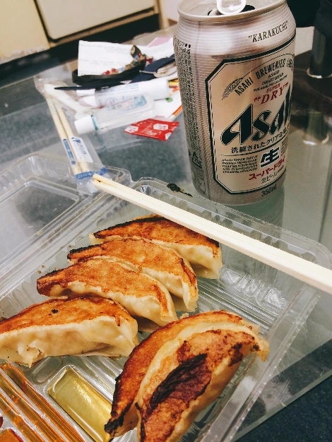 야식으로 제격인 교자다. 오사카에는 유명한 교자 가게들이 많은데, 551 호라이도 있지만 필자에게는 오사카 오쇼의 교자가 훨씬 맛있었다. 도톤보리 강가에서 거대한 교자 간판을 달고 있는 집이 오사카 오쇼인데, 필자가 방문한 곳은 숙소인 아메리카무라 쪽에 있는 본점이었다. 라멘이나 덮밥 같은 메뉴 판매하지만, 필자는 교자만 포장했다. 가격은 6개에 240엔으로 도톤보리점과는 차이가 있는 것 같았다. (도톤보리점이 더 저렴)