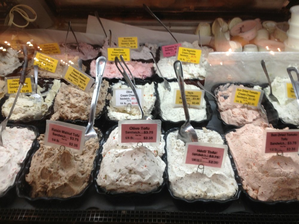 보통 냉동 진열대를 지나가면서 베이글과 크림치즈, 토핑을 고르는 방식으로 주문하기 때문에 굳이 헷깔리는 메뉴판을 보지 않고도 메뉴들을 손으로 가리키며 주문할 수 있다. 베이글은 플레인, 통 밀, 참깨, 어니언, 갈릭 등 다양한 종류가 있다. 가게마다 시그니처 베이글이 있기도 한데, 여러 종류의 깨가 듬뿍 뿌려진 Bagel Works의 베이글은 다른 베이글보다 훨씬 고소했다.