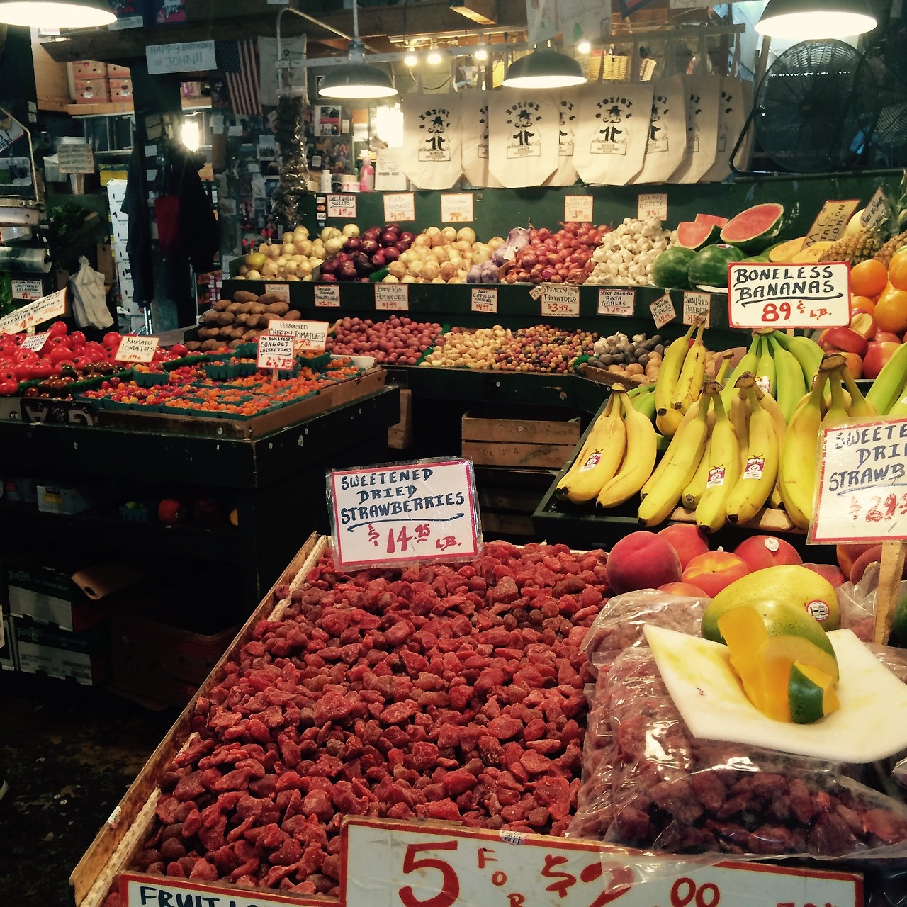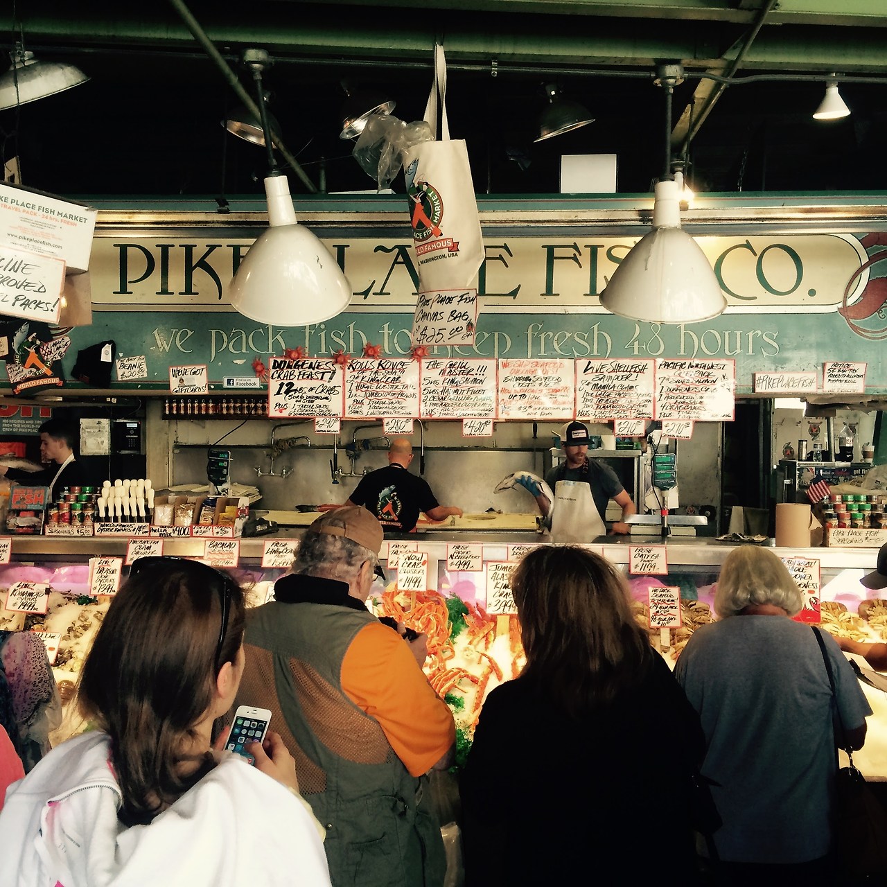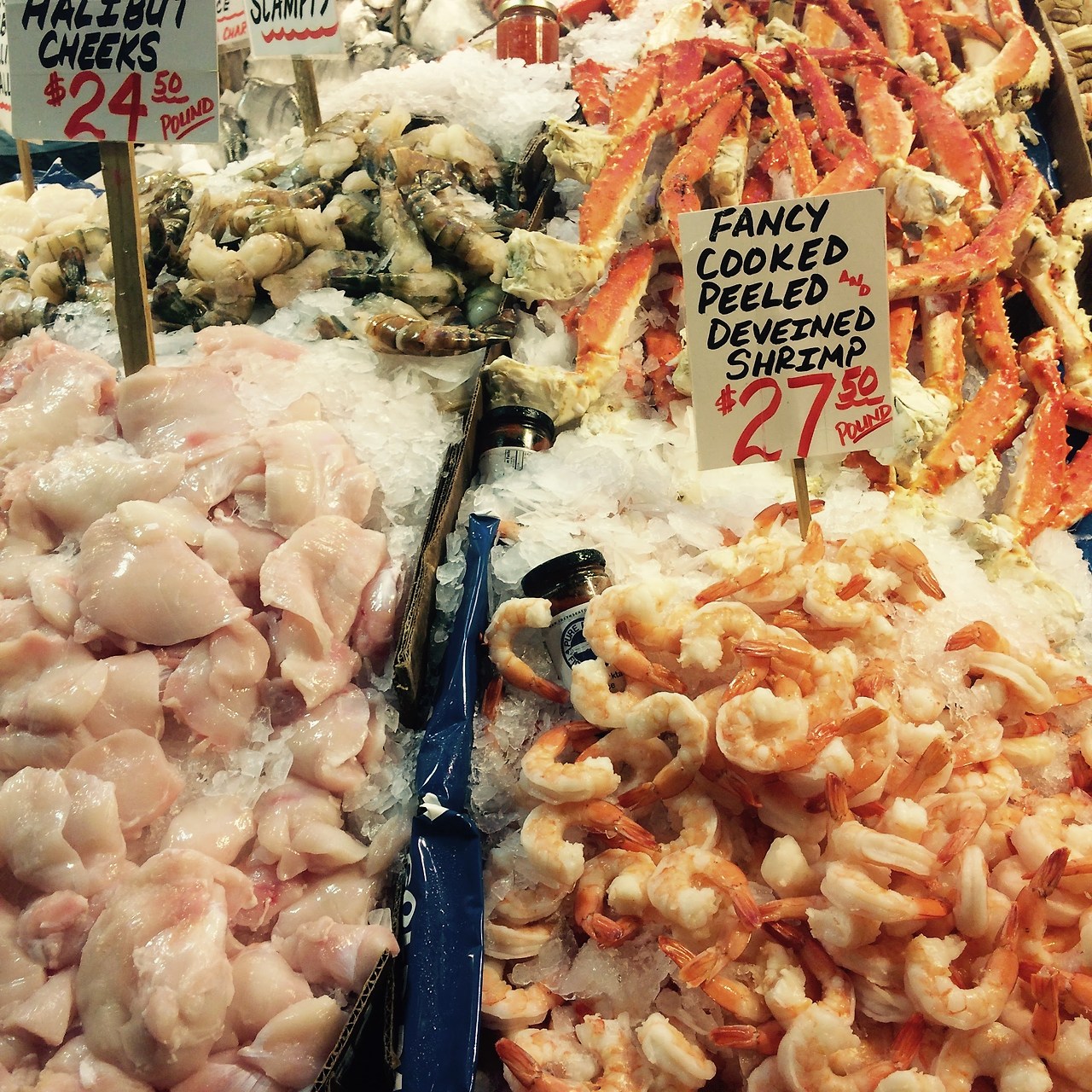 파이크 마켓에 들어서자 눈길을 끄는 건 역시나 해산물이었고 후각을 사로잡는 건 해산물에서 나오는 짠내와 비린내였다. 랍스터와 연어, 새우부터 시작해서 각종 생선과 어패류들은 싱싱한 분위기를 불어넣었고 가격을 외치고 흥정을 하는 상인들의 목소리는 그 위에 활기를 더했다.