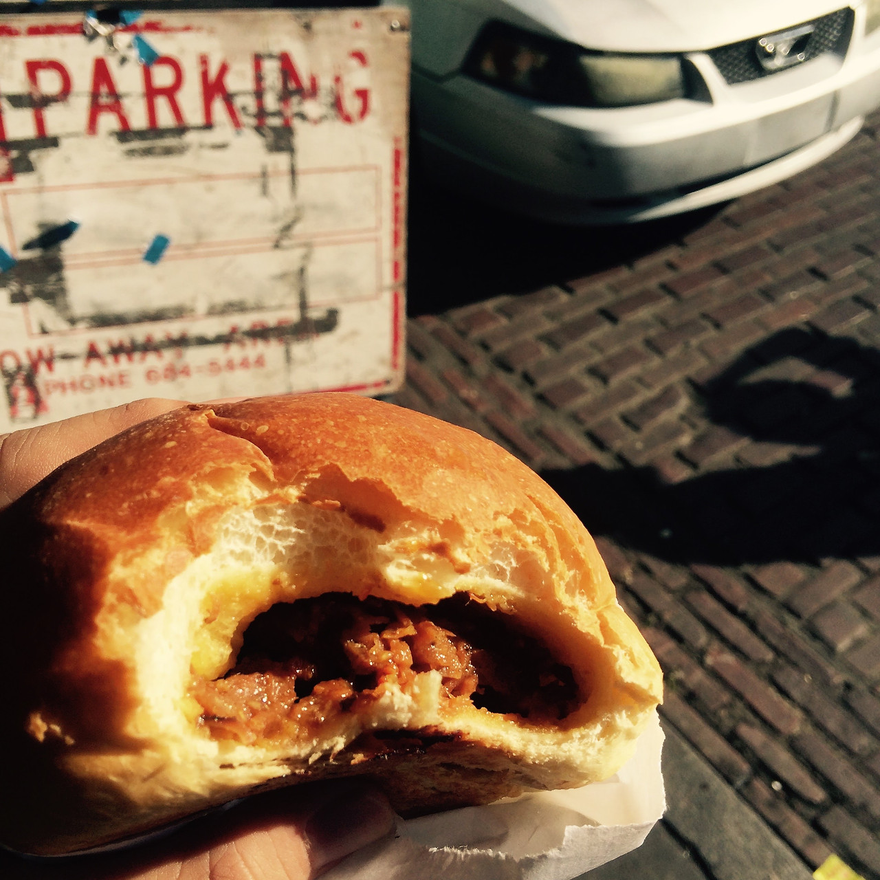 스타벅스 1호점에 들른 후에 점심 시간대가 되어서 뭐라도 먹기는 해야 했고, 뭐가 맛있는지는 모르겠어서 쉽게 갈 곳을 정하지 못하고 방황하다가 개당 2불이라고 표시되어있는, 안에 고기를 채운 빵을 먹었다. 이때 미국의 세금 별도 계산 방식을 처음으로 경험했다. 분명 5불 지폐를 냈으니 지폐 세장을 받는 게 맞았는데, 내가 받은 건 지폐 한 장과 동전 몇 닢뿐이었다. 그런데 그때는 아직 입이 얼어있을 때여서 무슨 일인지 물어보지도 못했었다. 노상 가게여서 팁을 의무적으로 주지 않아도 돼서 얼마나 다행이었는지.
