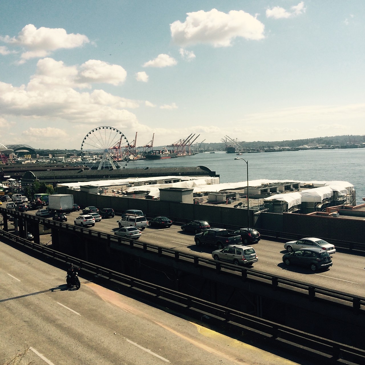 어디든 항구 도시는 어디론가 떠다고 싶게 만든다. 물론 실제로는 공항에 가서 비행기를 타야 하지만, 탁 트인 바다와 기계장비가 보이는 항구의 조합이 더 가슴을 뛰게 한다. 한국의 부산, 인천, 평택이 그랬고 바르셀로나, 이곳 시애틀, 샌프란시스코의 항구가 그러했으며 뉴욕 물류항의 모습도 그랬다. 육지와 섬을 있는 다리와 항구, 그리고 바다가 한 눈에 들어오는 전경은 이런 도시들에서만 볼 수 있기 때문에 그렇지 않을까.