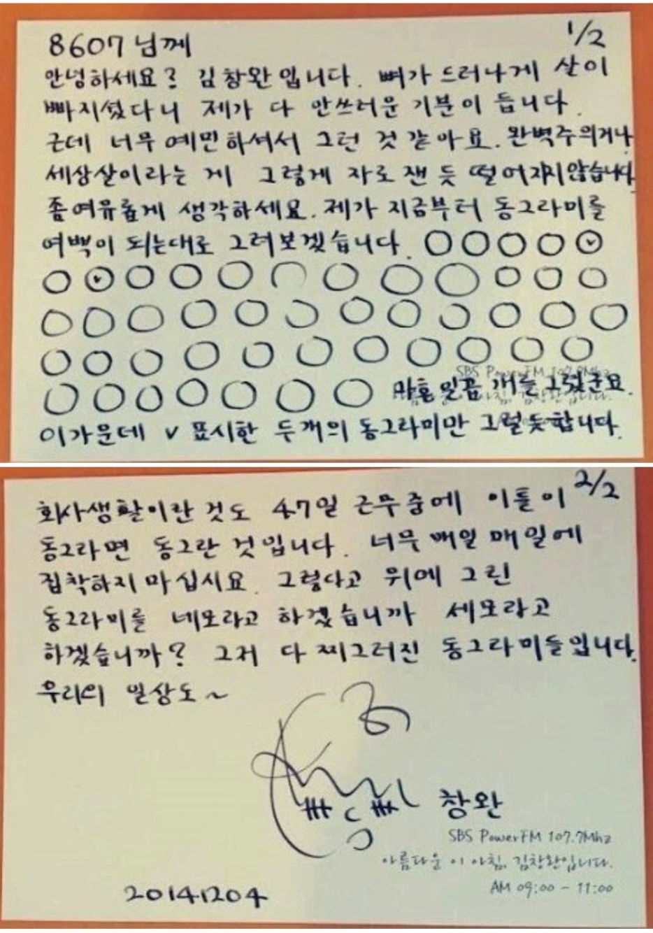 몇 년 전 우연히 인터넷 서핑을 하다가 발견한 내용인데, 회사 일로 힘들 때마다 꺼내어 본다. 김창완 님이 진행하는 라디오에서 고민사연을 보낸 청취자에게 엽서를 써준 내용이다.
