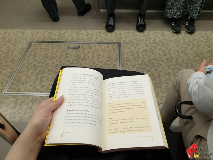 쪼르르 3명이 책을 읽고 있는데, 방금 열차를 탄 사람이 내 앞에 서더니 우리를 보았는지 핸드폰을 집어넣고 가방 안에서 책 한 권을 꺼내 한순간에 4명이 책을 읽는 보기 좋은 모습을 본 적 있다.