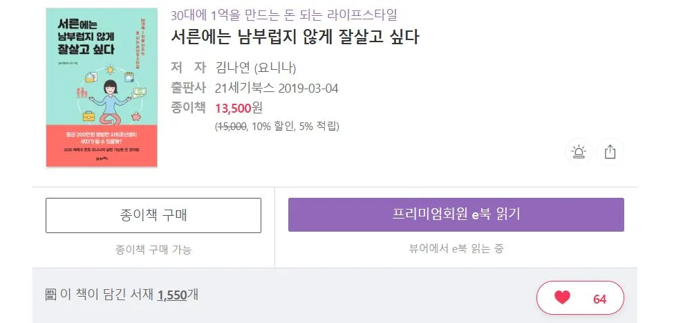 독서모임 할 때는 될 수 있으면 종이 책을 들고 가지만, 그전까지 읽는 독서는 e북으로 많이 하는 편이다.