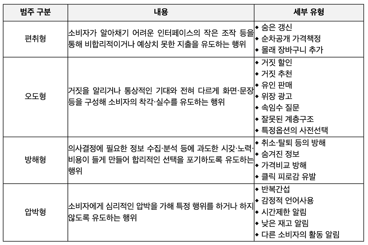 우리가 외국의 번역서와 온라인 아티클을 통해 읽던 다크 패턴이라는 개념이 수면 위로 올라와 법 개정에 포함되기까지 한 상황은 여러 의미를 내포하고 있습니다.