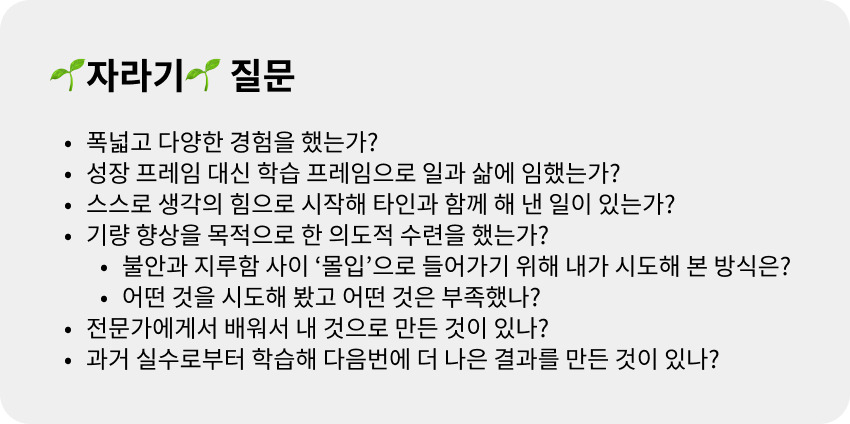 <함께 자라기>는 기획자로 직무 전환을 준비하면서 2021년 초에 처음 읽었던 책입니다. Top-down 방식의 루틴 한 업무 환경에 익숙했던 저에게 일터에서도 학습과 협력을 통한 성장이 가능하다는 사실을 알려준 책이지요.