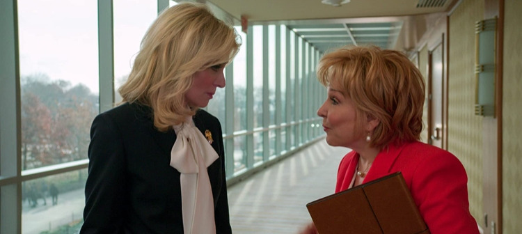다시 선거일로 돌아온다. 상황과 상태가 다르고, 대화 상대와 의도가 달라, 이번에는 완전히 속내를 드러내는 디디를, 더 마음껏 연기하는 주디스 라이트에 감탄해보자. 천천히 소파로 걸어오며, 디디는 낮고 굵게, 음절을 하나하나 씹고 늘여 뱉는다. 마지막 단어를 말함과 동시에 소파에 풀썩 몸을 던진다. “I am, SO tired 허대서, of- the- ga-me.”(삽입부호대로 말한다.) 정말로 질리고 지친 게 느껴진다. 흥미진진하게 둘의 대결을 지켜보던 중이었는데, 순간 갑자기, 속이 이상해진다. 이토록 유능하고 멋지고 자격이 넘치는 사람을 지쳐 나가떨어지게 하는 선거란 뭘까. 디디는 말한다, “일하는 건 좋아, 내가 지친 파트는, 선거 캠페인이지.” 티노의 러닝메이트 제안에 흥분했던 것은, 권력을 얻을 수 있어서가 아니라, ‘첫 여성 부통령’이라는 역사를 만들 수 있다는 희망 때문이었다. 부통령 자리를 아쉬워하며, 손을 꽉 쥐고, 숨을 쉭쉭 내쉬고, 눈에서 불을 뿜다, 마지막엔 눈물을 글썽인다. 주디스 라이트는, 대사 한 줄 한 줄을 뱉을 때 마다 언급하는 대상에 대한 디디의 태도를 보여주듯 드라마틱하게 제스처와 표정과 목소리를 변화시키면서도, 감정의 흐름이 자연스럽게 이어지도록 한다. 그리하여 디디가 어떤 사람이고 원하는 것이 무엇인지, 다시금 요약해 주는 훌륭한 장면이 탄생했다.