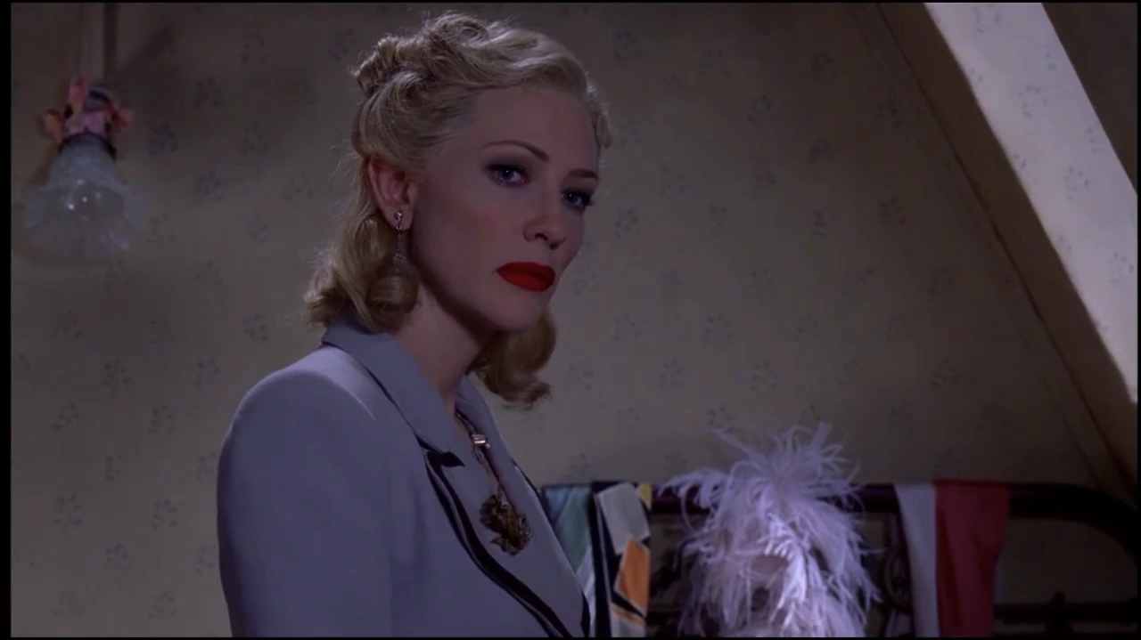 의도된 연출이다. 만나는 연인까지 포함한 모든 면에서 롤라와 수지를 대조되게 그리는 것. 기본적으로 수지의 시선을 통하므로(실제로 좀 무례한 행동을 하긴 했으나), 관객은 롤라에게 잣대를 들이대게 된다. 그러나 롤라와 수지는 삶의 방식이 다른 것뿐이고, 롤라에겐 나름의 까닭이 있다. ‘내 외모가 이렇지 않았다면 러시아를 벗어나지 못했을 거’라며 살짝 내리깔던 눈이 떠오른다. ‘이제 지겨운 돈 걱정은 안 해도 된다’며 짐을 챙기는 그녀는, 짐짓 기뻐하나 초조해 보인다. ‘단테는 좋은 사람이겠지?’ 하고 묻는 동그란 눈과 내려간 입꼬리에 겁이 묻어있다. ‘왜 날 비난하냐’며 신경질적으로 옷가지를 툭 툭 내려놓는 손끝에선, 분노가 아니라 걱정과 서운함이 보인다. 케이트 블란쳇은 그렇게, 롤라의 시원한 미소 속에 필사적인 불안을 숨겨 놓는다. 불안할수록 크게 웃는다. 외모를 꾸미고, 눈알을 굴리며 입꼬리를 씩 올리고, 머리카락을 슥 넘기며, 롤라는 최선을 다해 매력적인 여인이 된다. 아무 생각 없이 즐거워 보이는 그 모습에 담긴 것은, 일종의 생존이다.