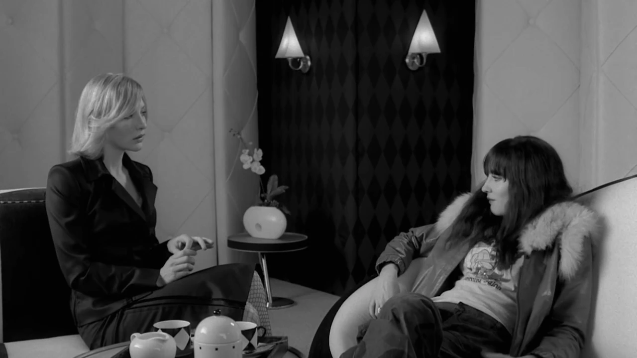 유명한 배우인 케이트와 하나도 안 유명한 밴드를 하는 애인을 둔 쉘리. 스타일이나 성격부터 여러 모로 안 맞아 보이는 그들은 사촌이다. 약간의 가식과 진심과 종종 뼈가 있는 짧은 대화를 주고받은 후 헤어진다. <커피와 담배>(2003) 속 이야기 ‘Cousins’. 줄거리다. 별 거 없다. 그러나 이들을 지켜보며 관객은 숨을 죽이고 애매한 미소를 짓게 된다. 기본적으로, 사소하고 보편적인 감정과 태도를, 애정이 담긴 시선으로 담은, 디테일이 전부인 각본이 있다. 짐 자무쉬는 배우의 자연스러운 개성이 찌질한 매력이 되도록 캐릭터를 만든다. 그 디테일과 개성을 살리는 건 당연하게도 배우들,이며, 이 경우엔 한 배우, 케이트 블란쳇이다.